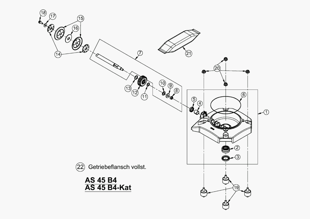 Hier finden Sie alle Ersatzteile von AS-Motor Profi-Rasenmäher AS 45 B4-Kat ab FNr. 021008050001 aus dem Zeichnungsblatt Getriebeflansch vollst.: