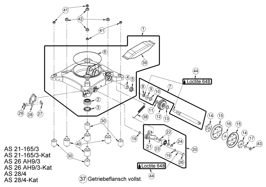 Hier finden Sie alle Ersatzteile von AS-Motor Allmäher AS 28 2T und AS 28/4-Kat ab FNr. 020115070001 aus dem Zeichnungsblatt Getriebeflansch vollst.: