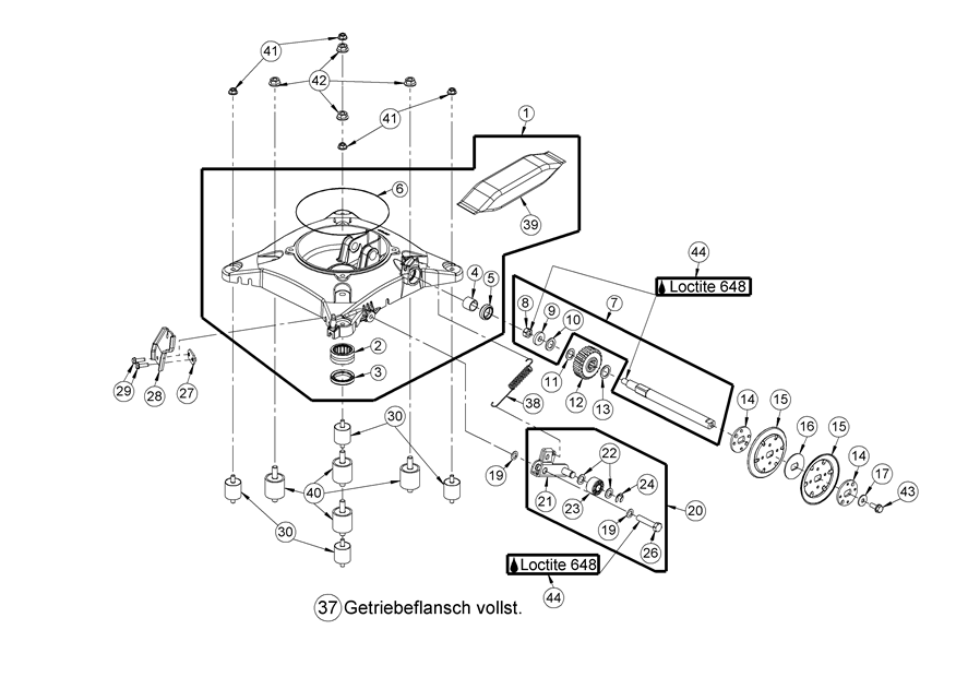 Hier finden Sie alle Ersatzteile von AS-Motor Allmäher AS 28 2T ES ab FNr. 035019010001 aus dem Zeichnungsblatt Getriebeflansch vollst.: