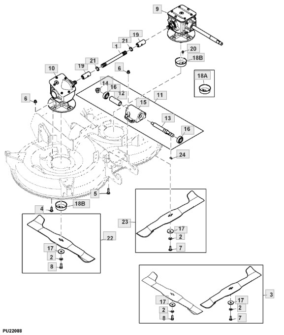 Ersatzteile für Rasentraktor X950R (PC11965) von John Deere aus der Zeichnung Getriebegehäuse - ST766705: