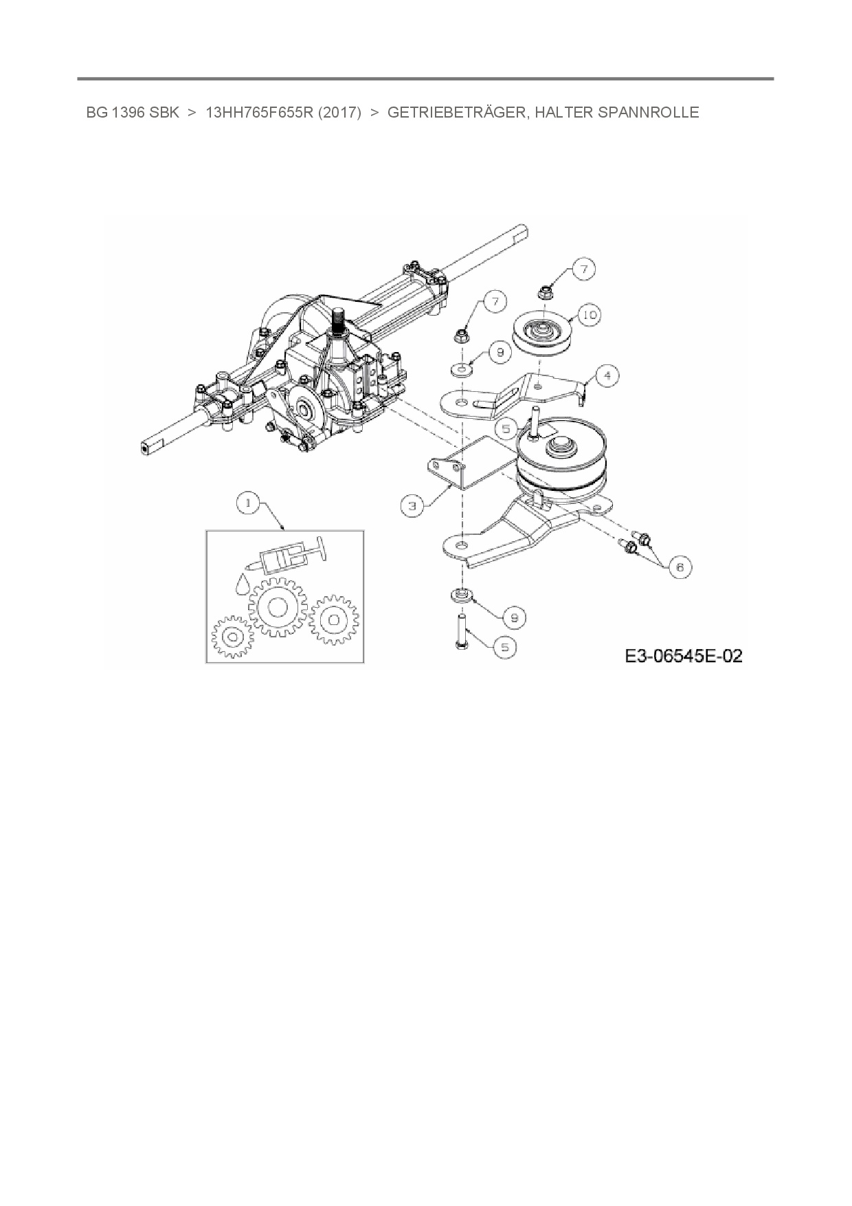 Download Ersatzteil-Zeichnung Bestgreen BG 1396 SBK Zeichnung Getriebeträger, Halter Spannrolle (PDF-Format)