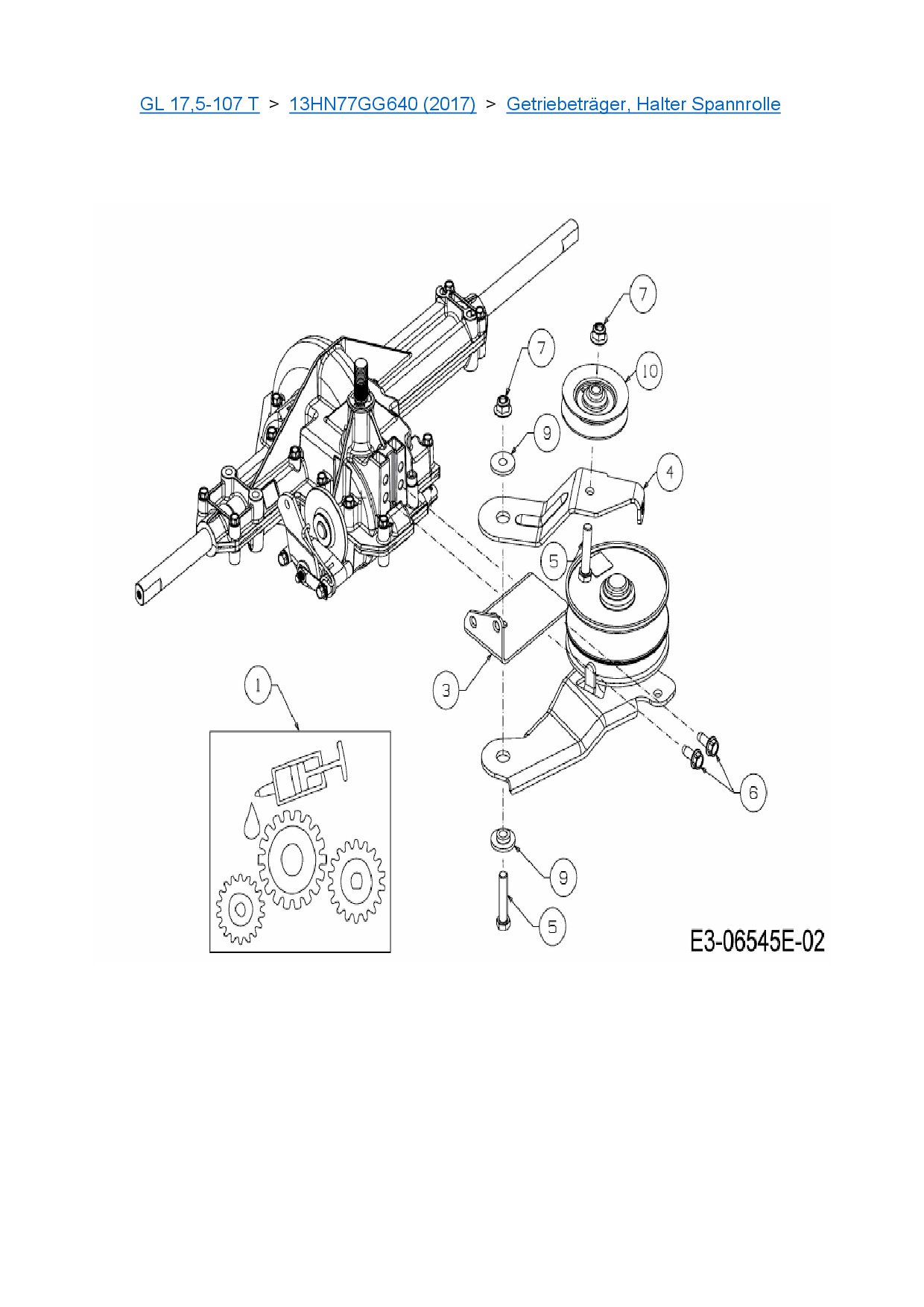 Ersatzteile für Rasentraktor Gartenland GL 17,5-107 T aus der Zeichnung Getriebeträger, Halter Spannrolle: