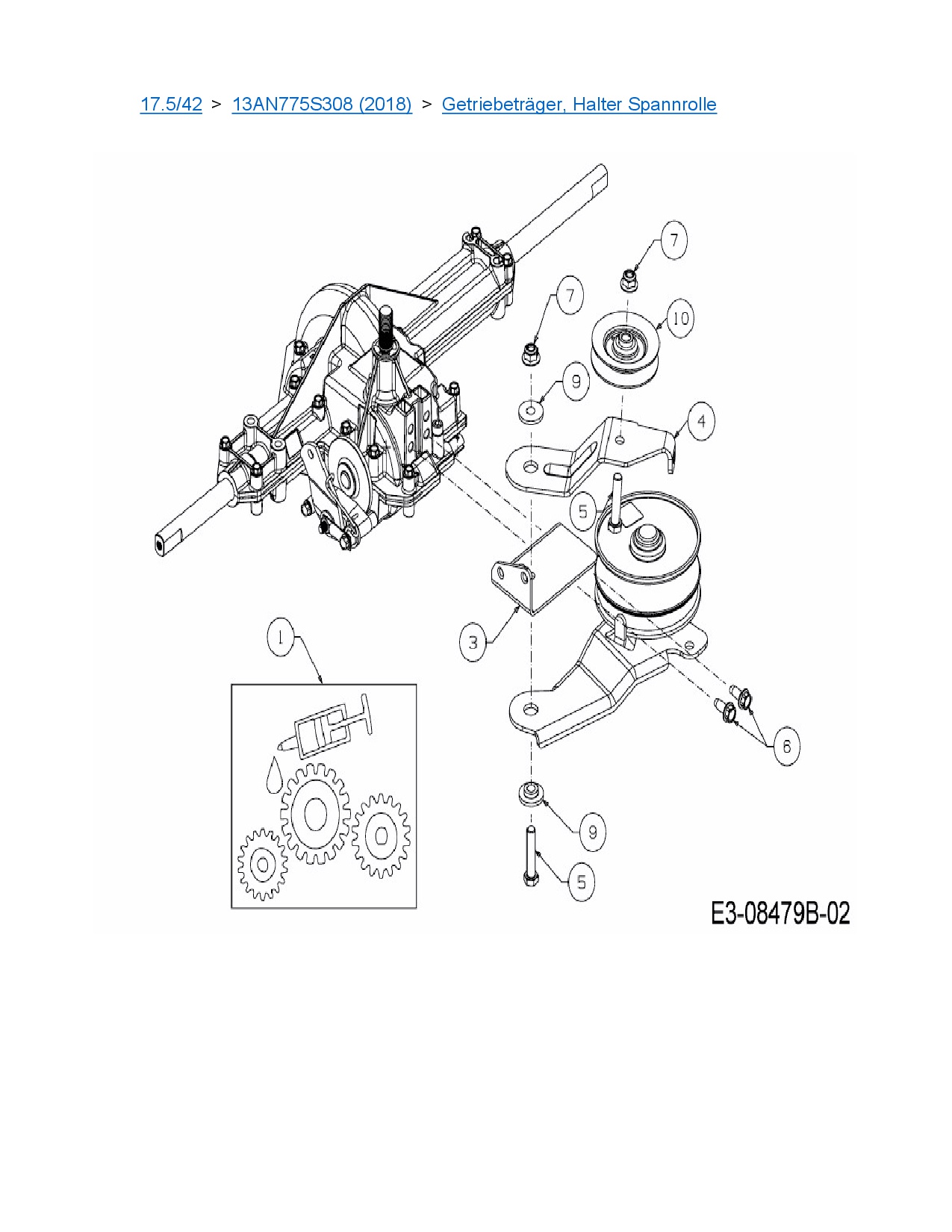 Ersatzteile für Rasentraktor MTD 17.5/42 aus der Zeichnung Getriebeträger, Halter Spannrolle: