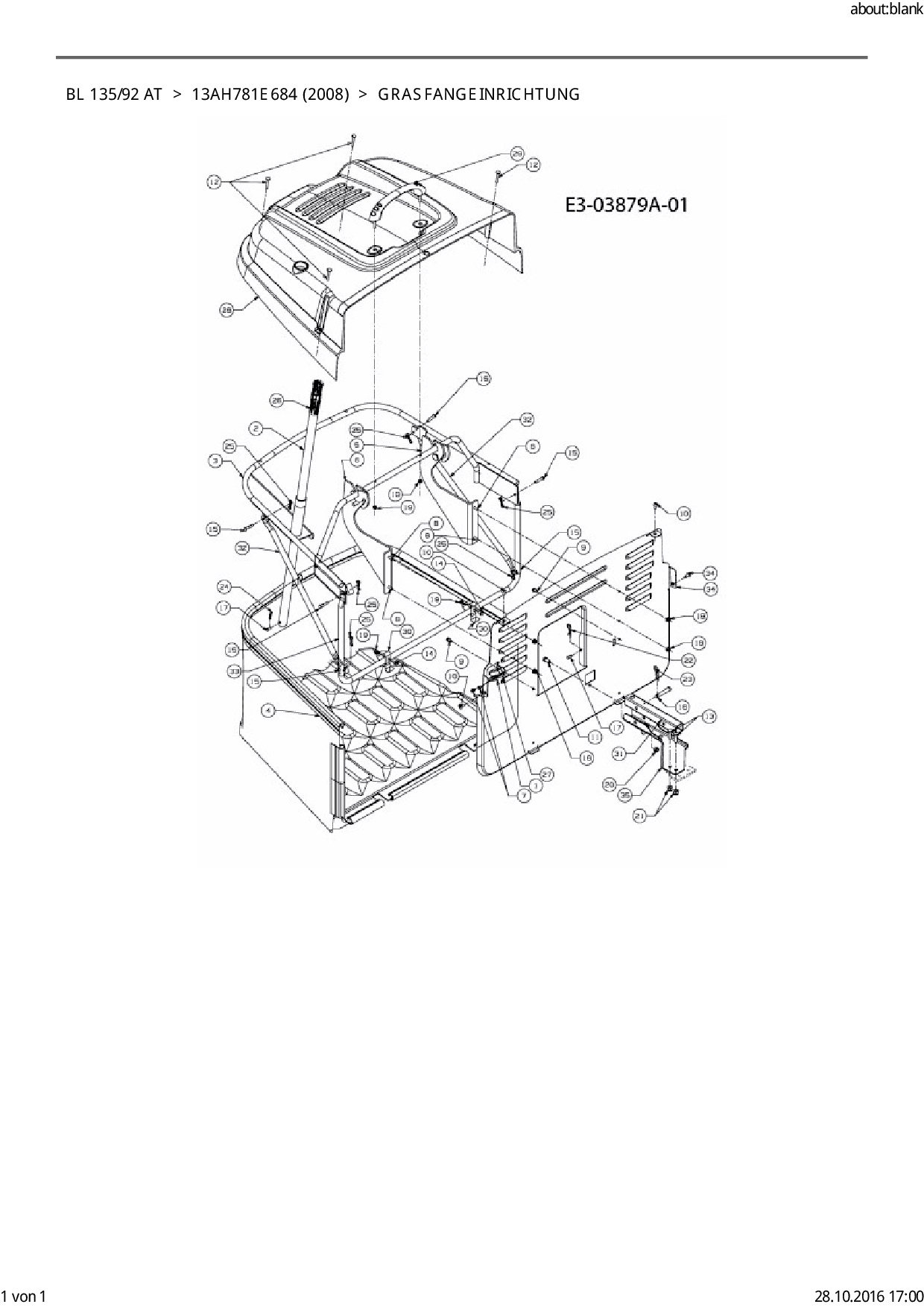 Ersatzteile für Rasentraktor Bolens BL 135/92 AT aus der Zeichnung Grasfangeinrichtung: