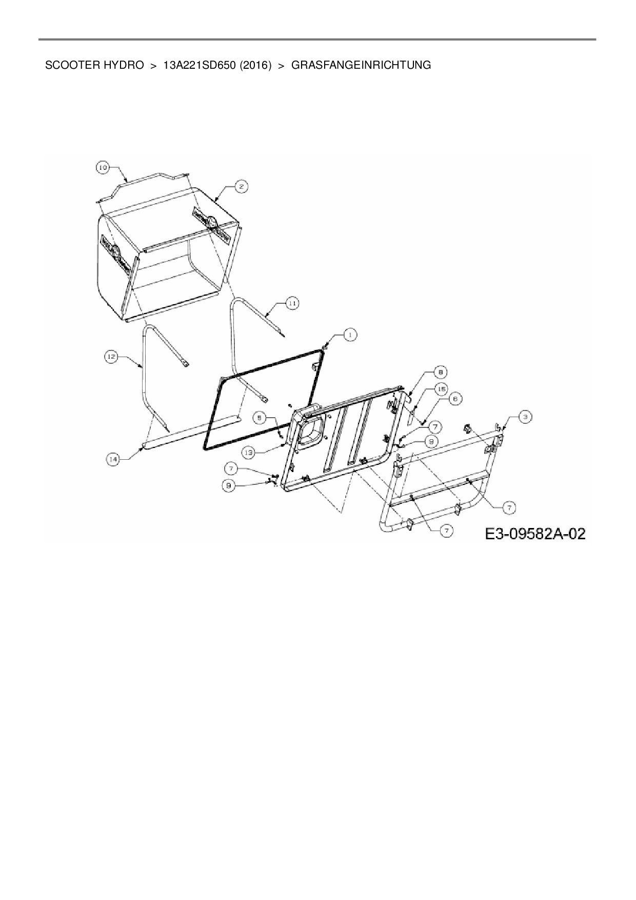 Ersatzteile für Rasentraktor Wolf-Garten Scooter Hydro aus der Zeichnung Grasfangeinrichtung: