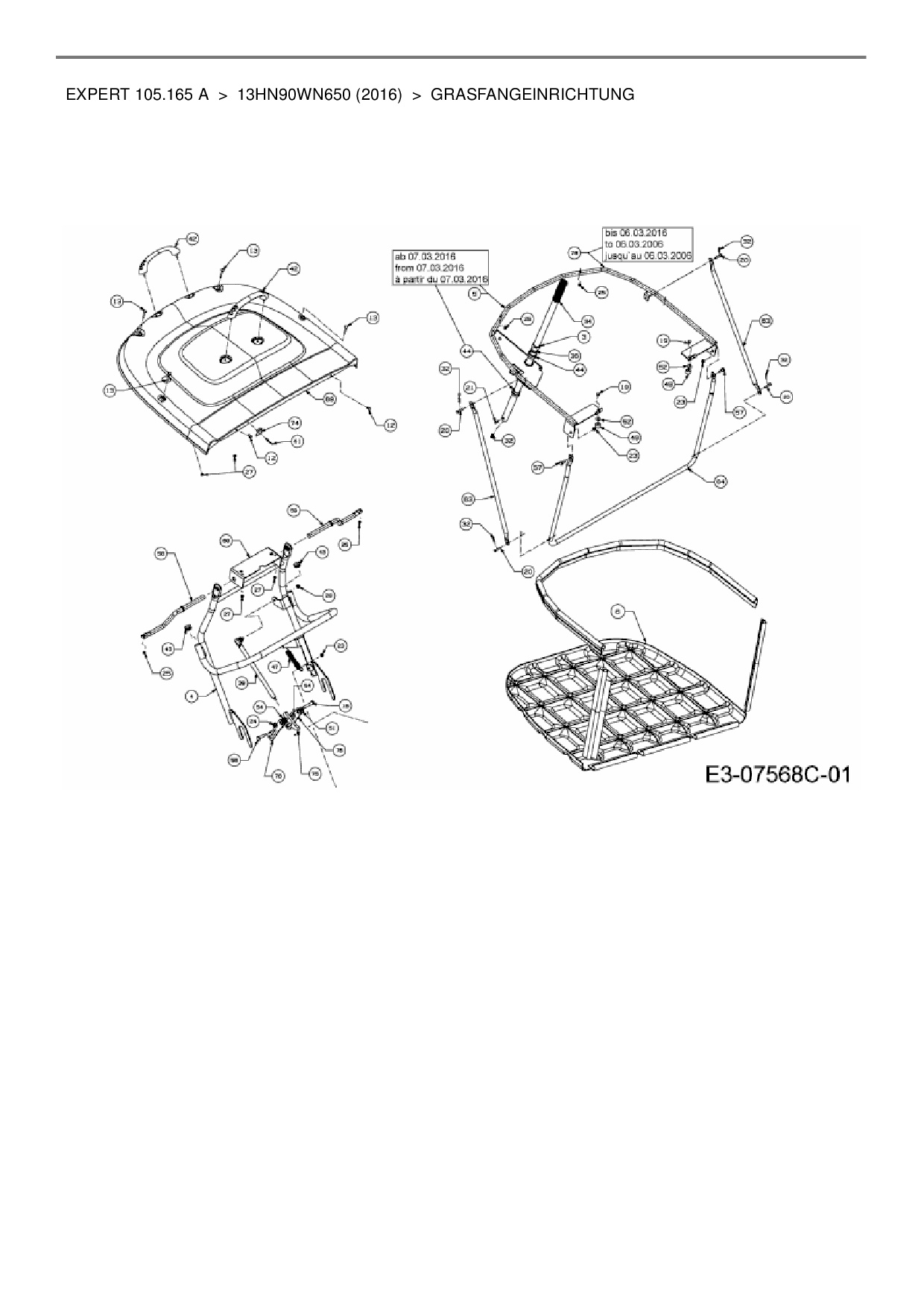 Ersatzteile für Rasentraktor Wolf-Garten Expert Expert 105.165 A aus der Zeichnung Grasfangeinrichtung: