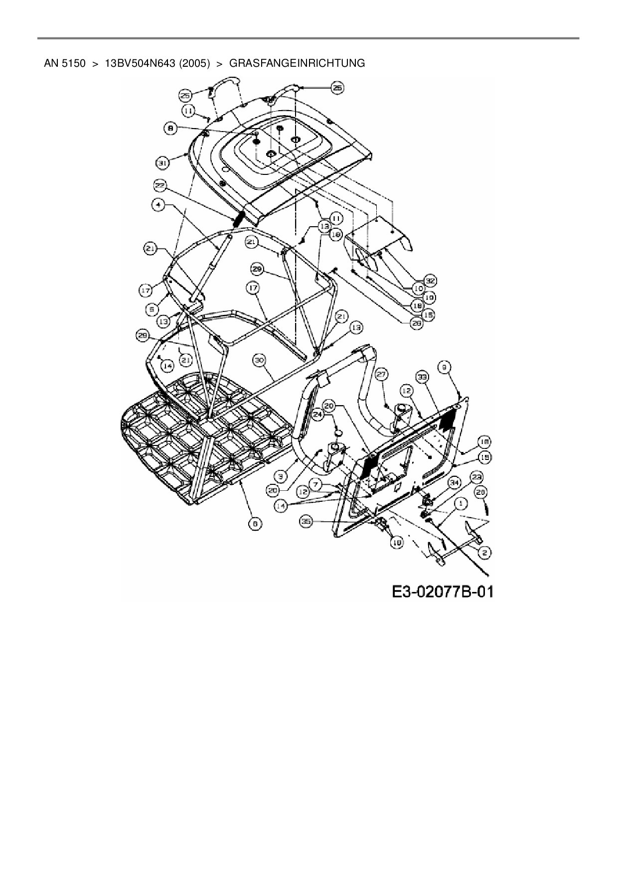 Ersatzteile für Rasentraktor Yard-Man AN 5150 aus der Zeichnung Grasfangeinrichtung: