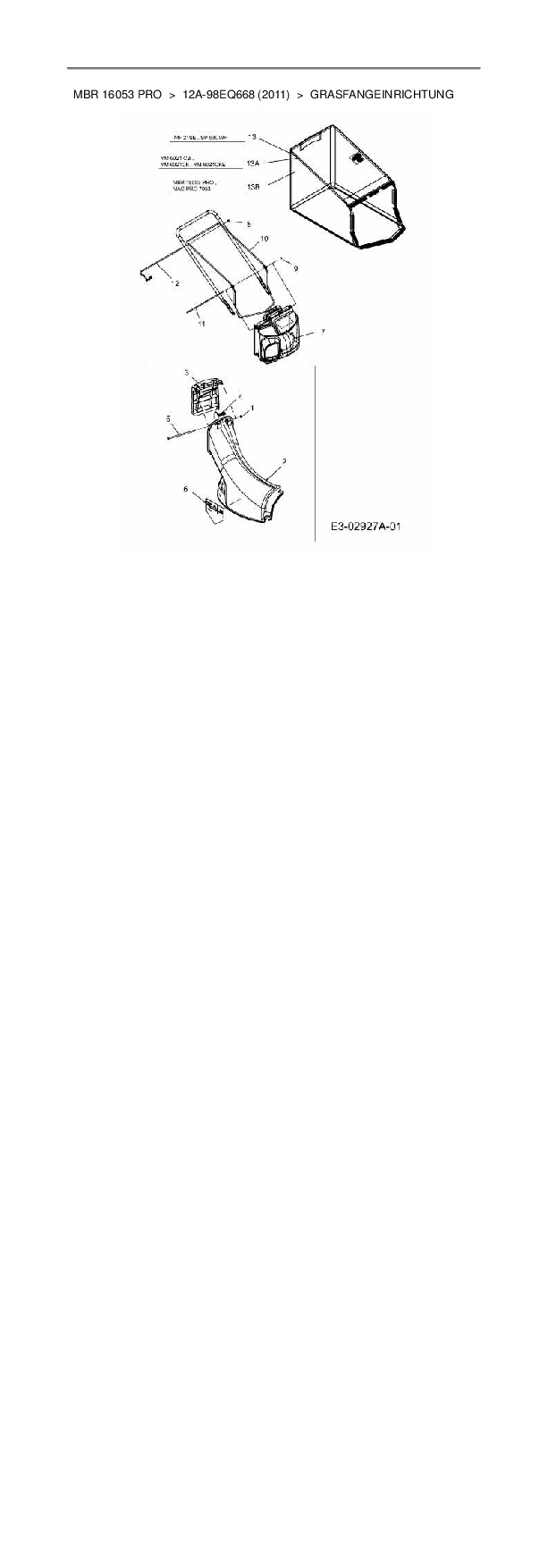 Ersatzteile für Motormäher mit Antrieb Mac Allister MBR 16053 PRO aus der Zeichnung Grasfangeinrichtung: