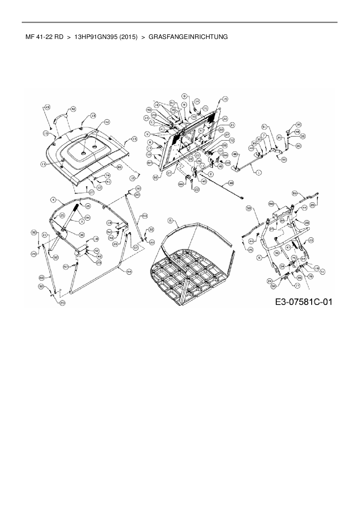 Ersatzteile für Rasentraktor Massey Ferguson MF 41-22 RD aus der Zeichnung Grasfangeinrichtung: