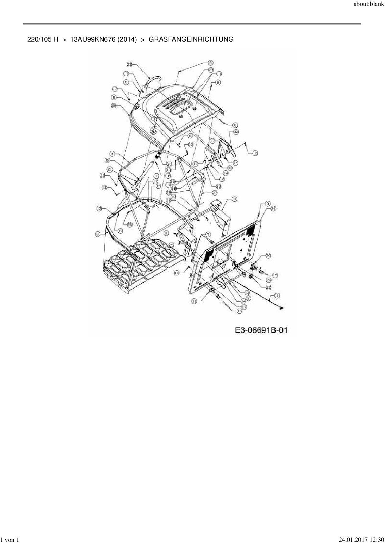 Ersatzteile für Rasentraktor MTD 220/105 H aus der Zeichnung Grasfangeinrichtung: