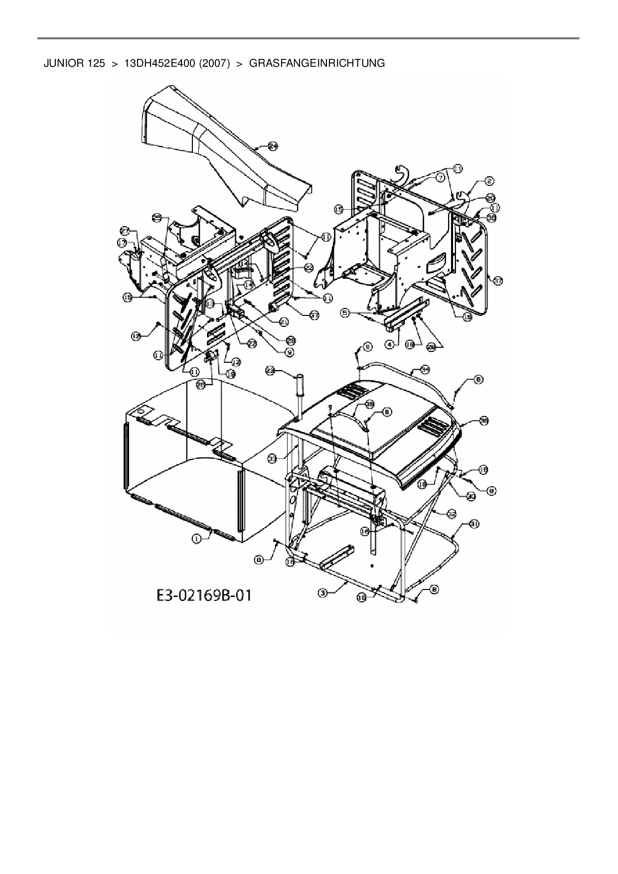 Ersatzteile für Rasentraktor MTD Junior 125 aus der Zeichnung Grasfangeinrichtung: