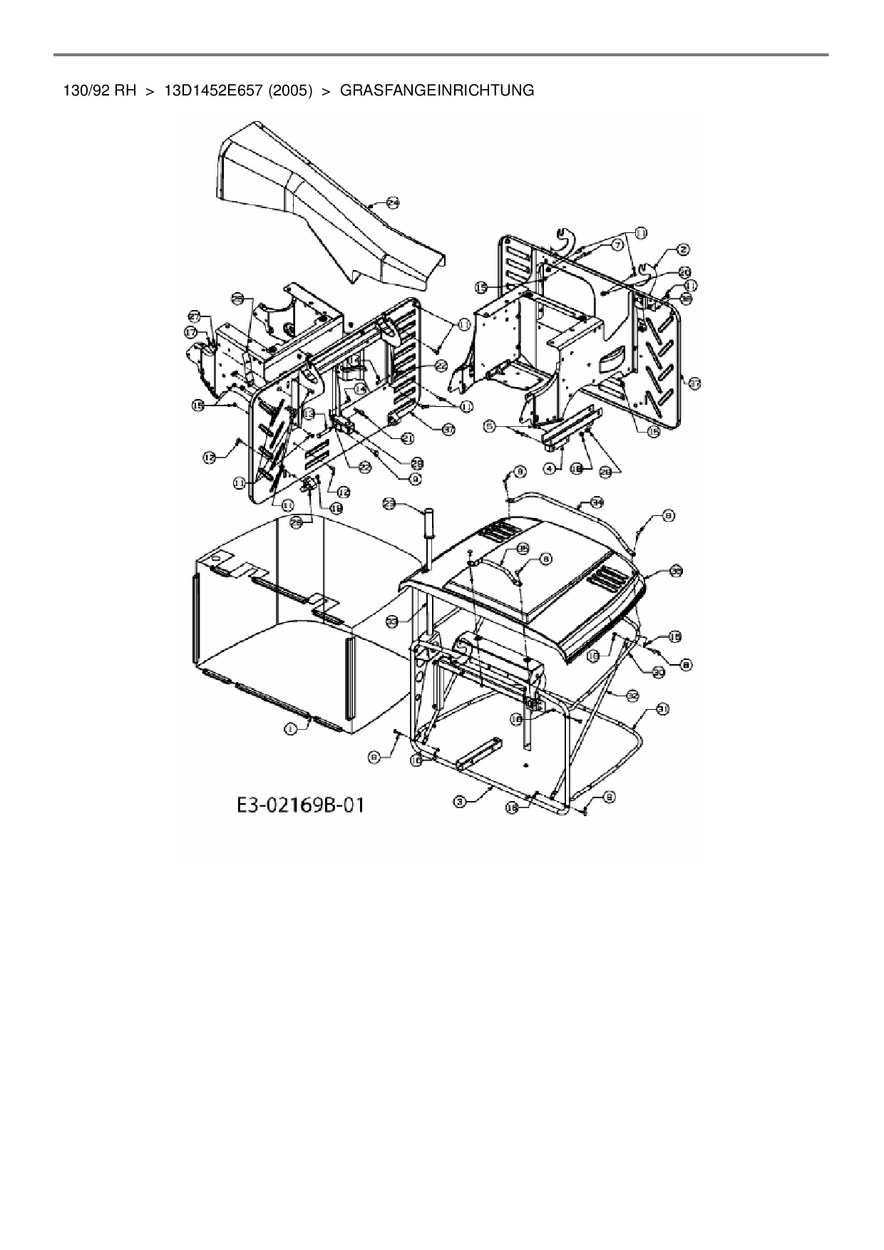 Ersatzteile für Rasentraktor Mastercut 130/92 RH aus der Zeichnung Grasfangeinrichtung: