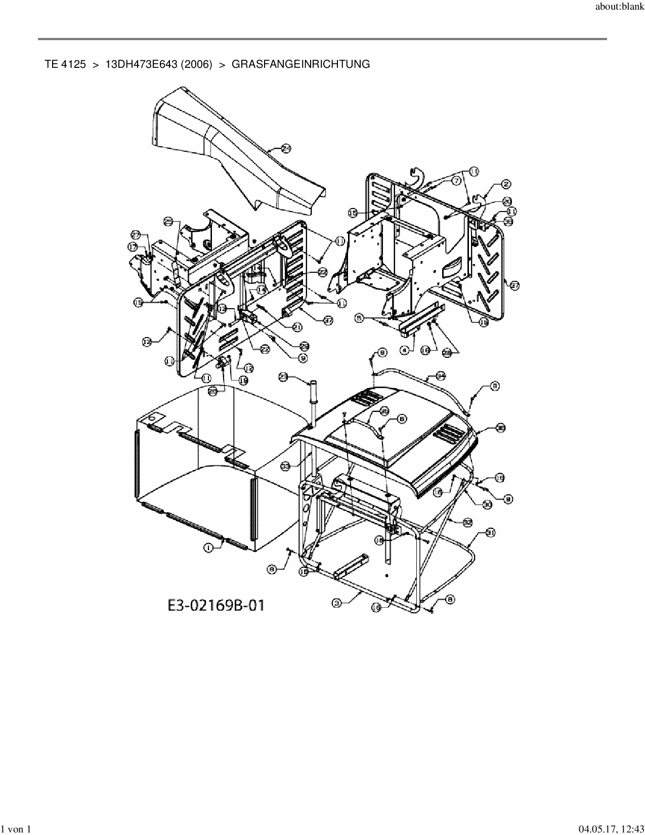 Ersatzteile für Rasentraktor Yard-Man TE 4125 aus der Zeichnung Grasfangeinrichtung: