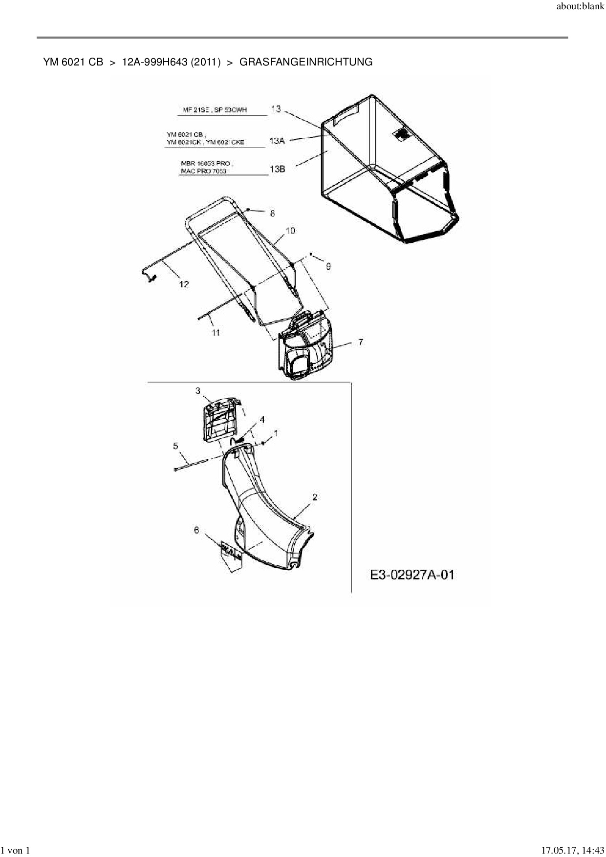 Ersatzteile für Motormäher mit Antrieb Yard-Man YM 6021 CB aus der Zeichnung Grasfangeinrichtung:
