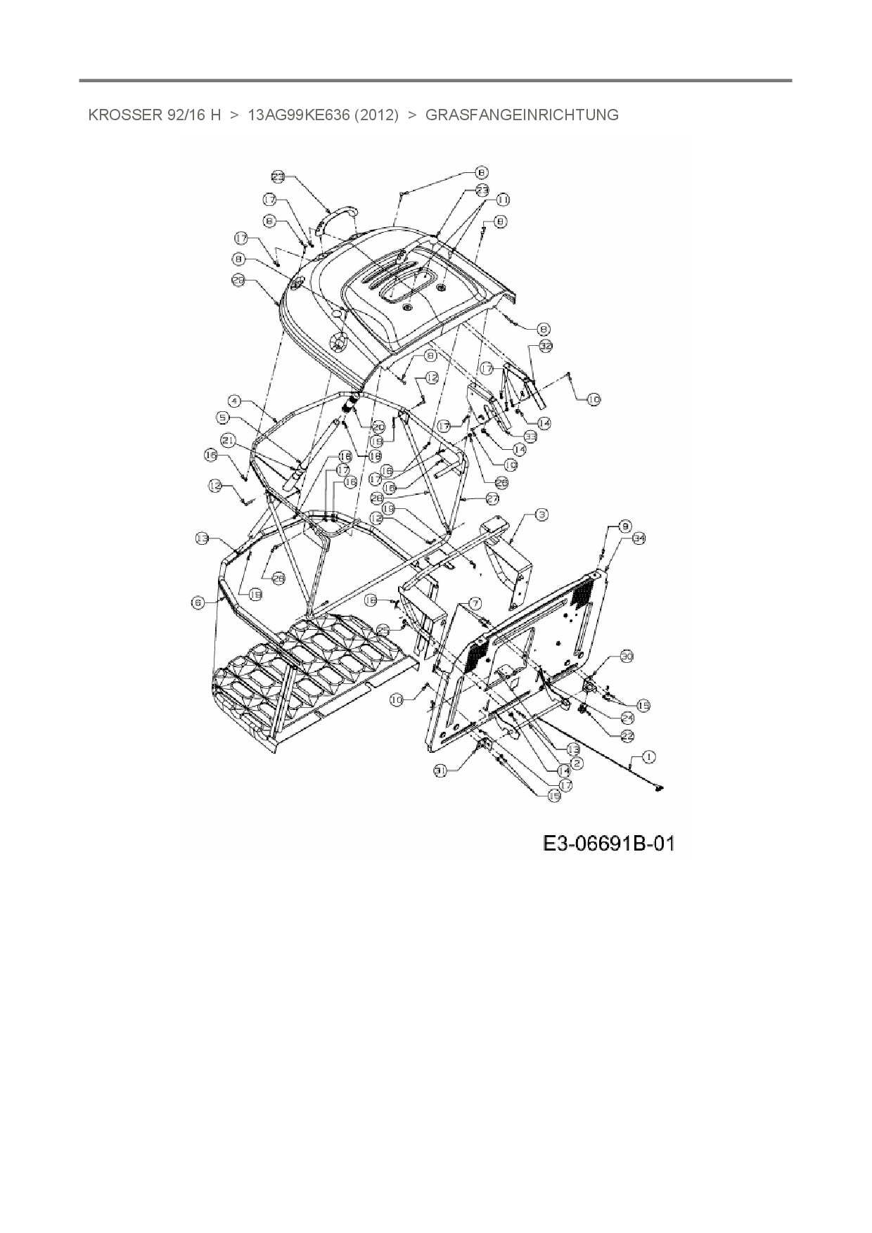 Ersatzteile für Rasentraktor Oleo-Mac Krosser 92/16 H aus der Zeichnung Grasfangeinrichtung:
