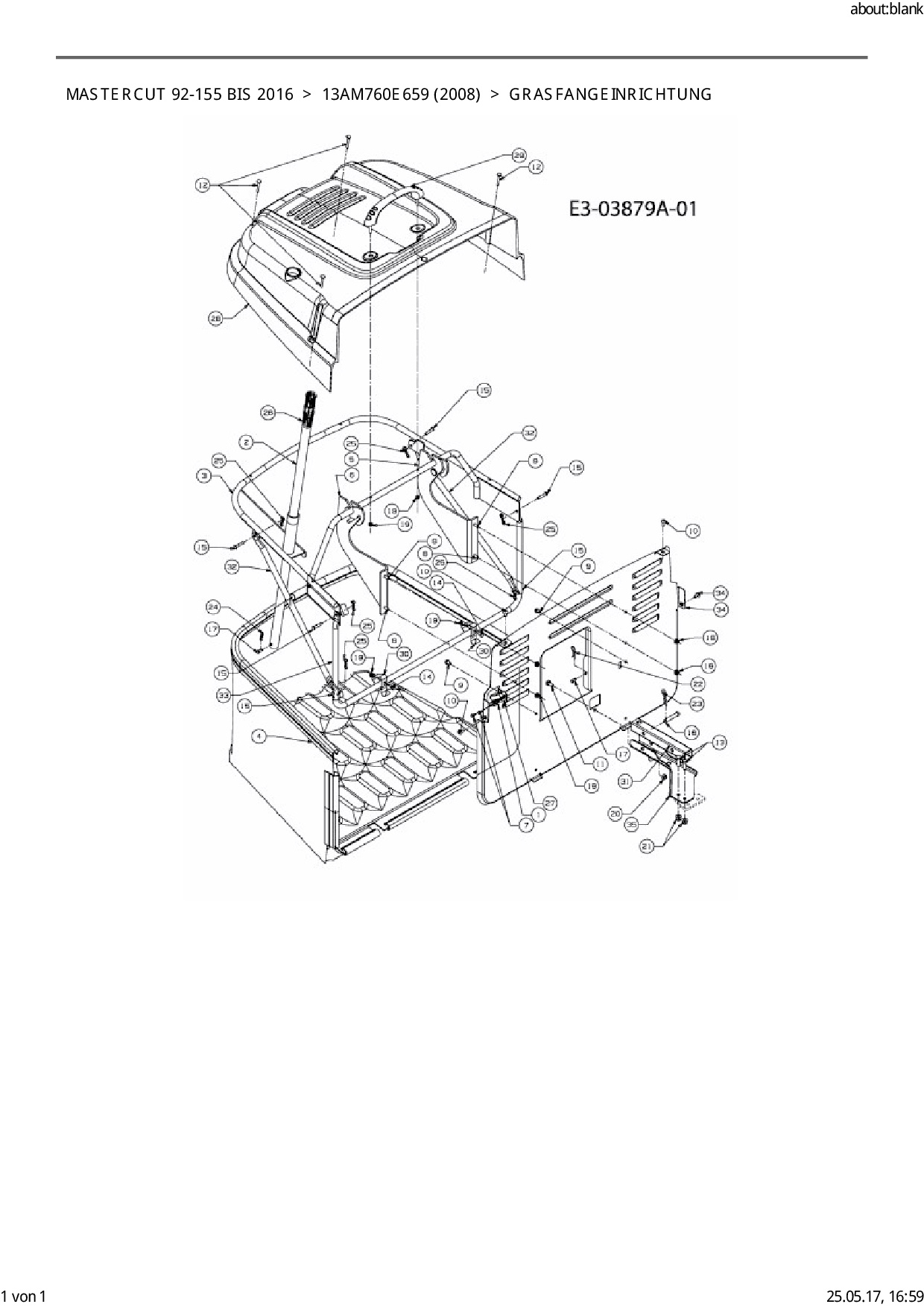 Ersatzteile für Rasentraktor Mastercut Mastercut 92-155 bis 2016 aus der Zeichnung Grasfangeinrichtung: