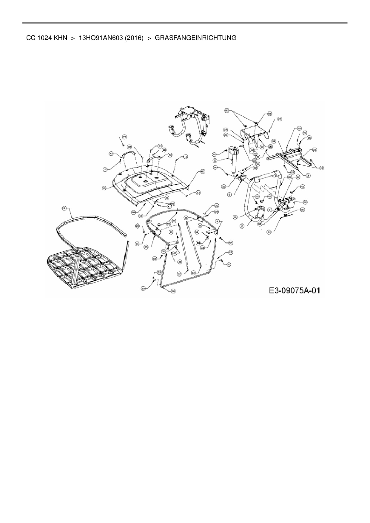 Ersatzteile für Rasentraktor Cub Cadet CC 1024 KHN aus der Zeichnung Grasfangeinrichtung: