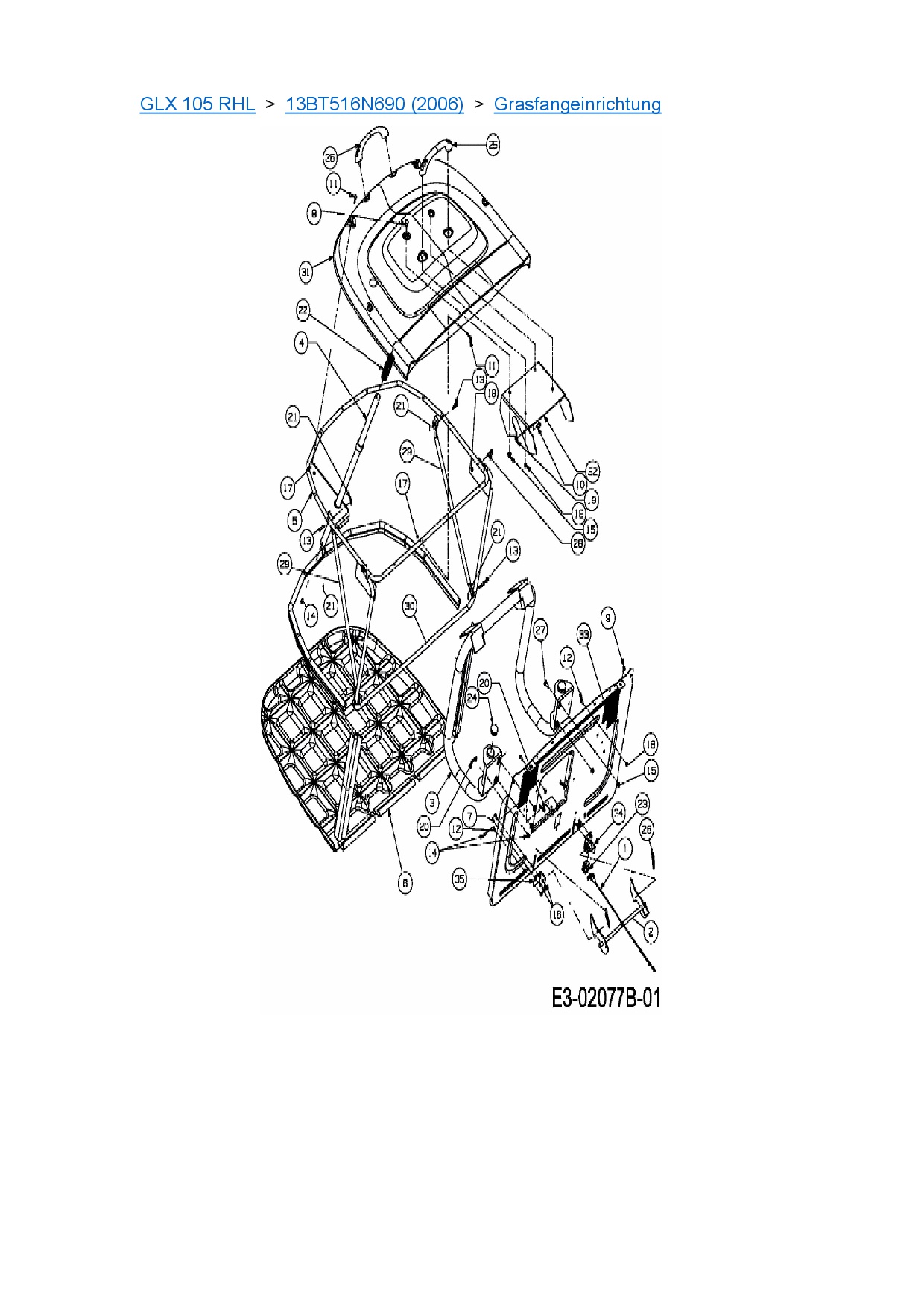 Ersatzteile für Rasentraktor Gutbrod GLX 105 RHL aus der Zeichnung Grasfangeinrichtung: