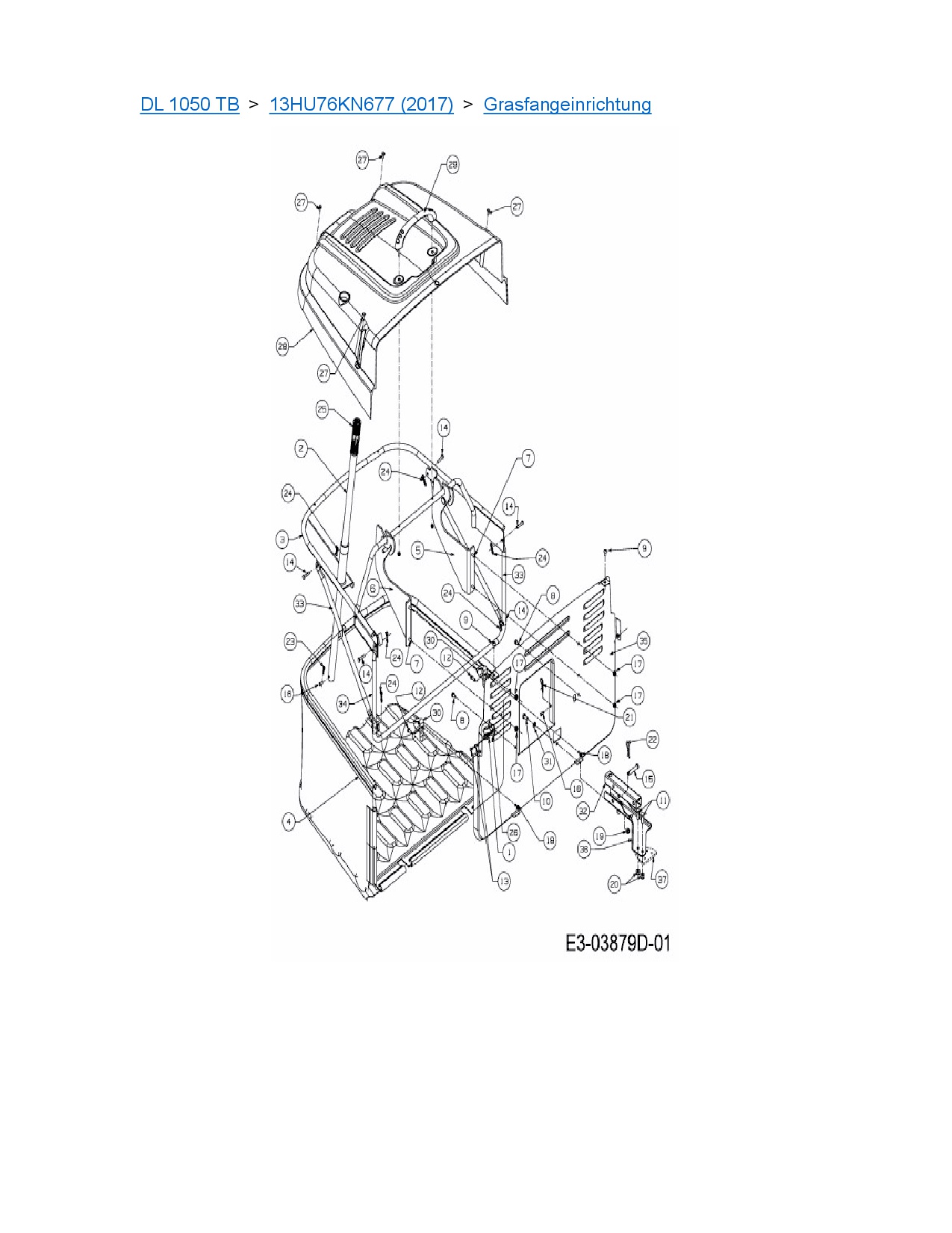 Ersatzteile für Rasentraktor MTD DL 1050 TB aus der Zeichnung Grasfangeinrichtung: