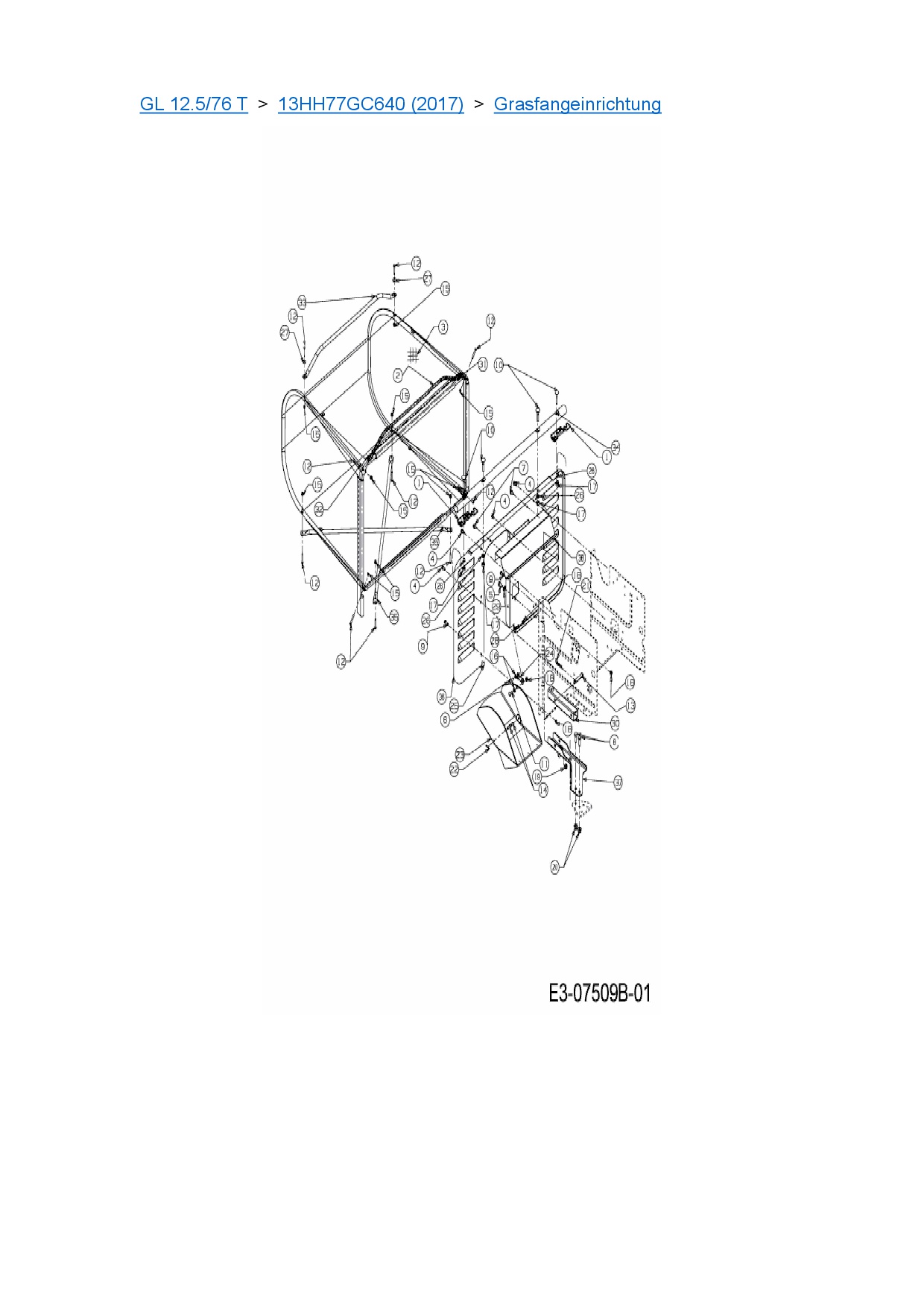 Ersatzteile für Rasentraktor Gartenland GL 12.5/76 T aus der Zeichnung Grasfangeinrichtung: