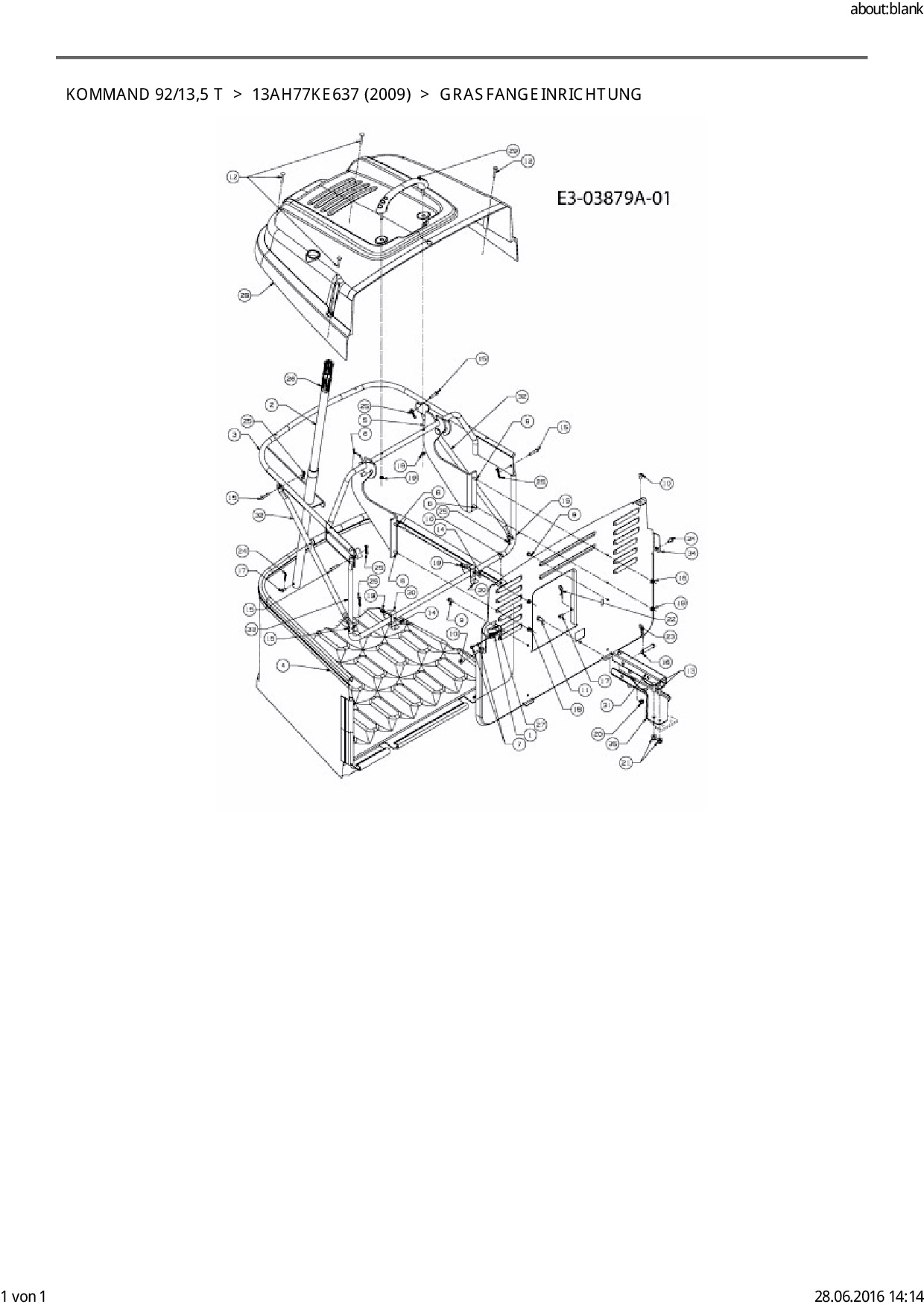Ersatzteile für Rasentraktor EFCO Kommand 92/13,5 T aus der Zeichnung Grasfangeinrichtung: