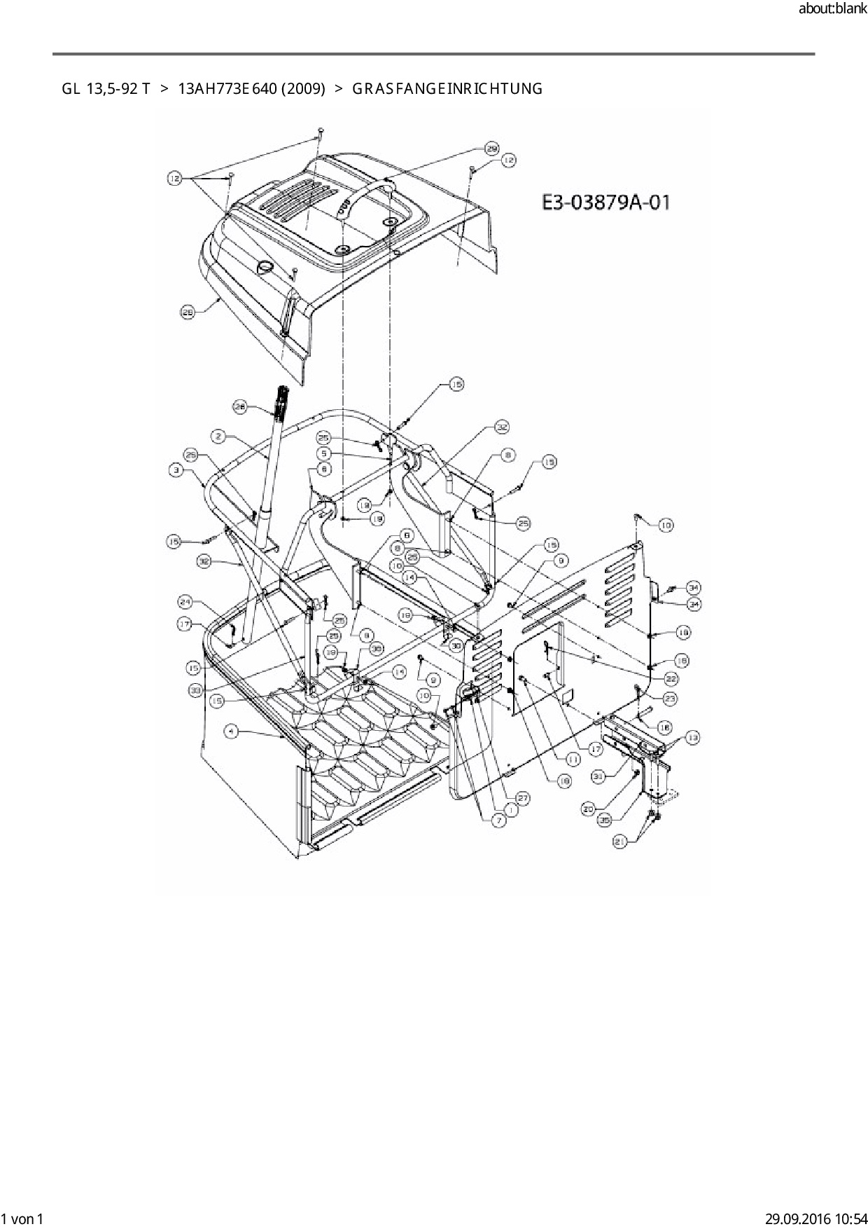 Download Ersatzteil-Zeichnung Gartenland GL 13,5-92 T Zeichnung Grasfangeinrichtung (PDF-Format)