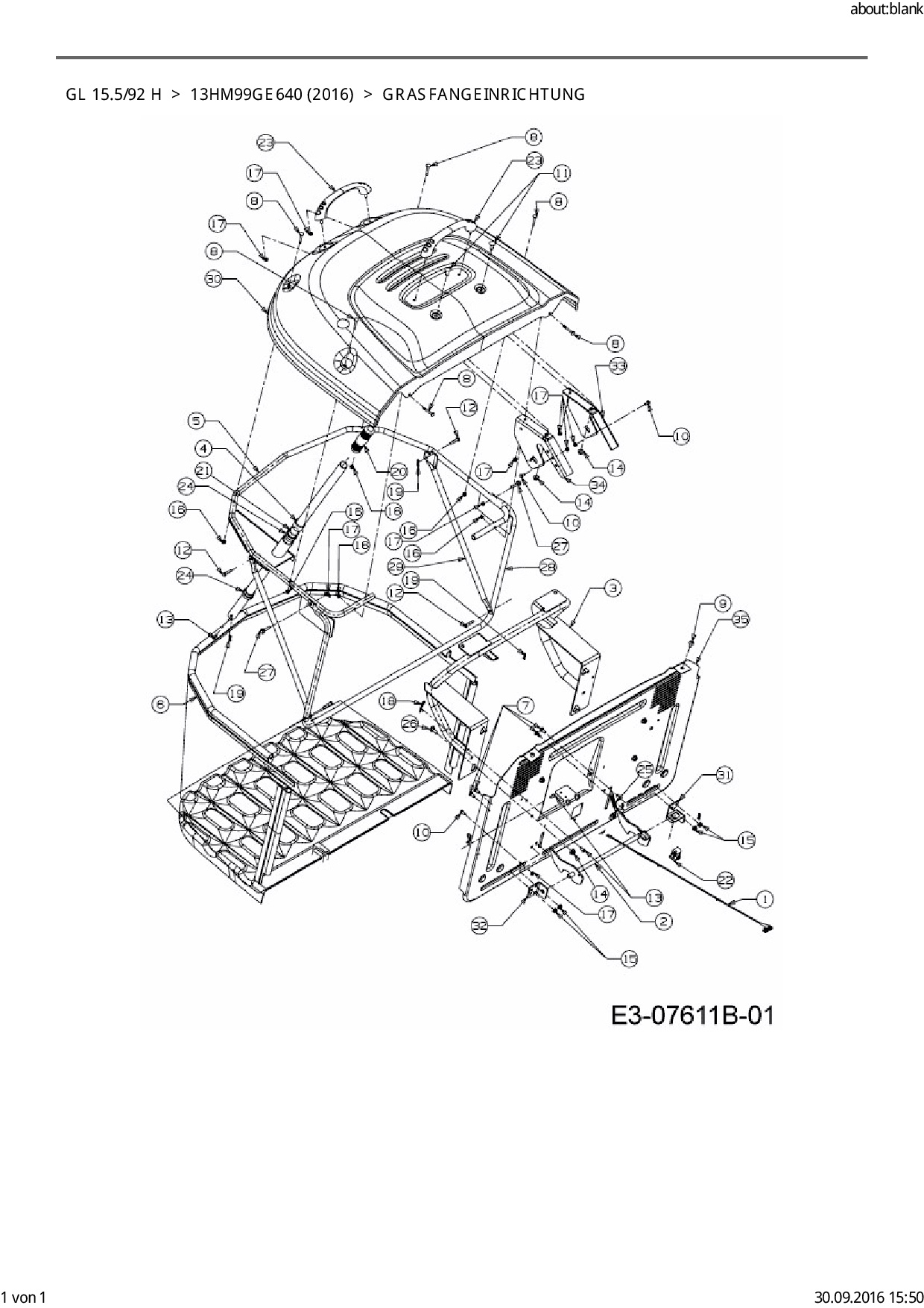 Ersatzteile für Rasentraktor Gartenland GL 15.5/92 H aus der Zeichnung Grasfangeinrichtung: