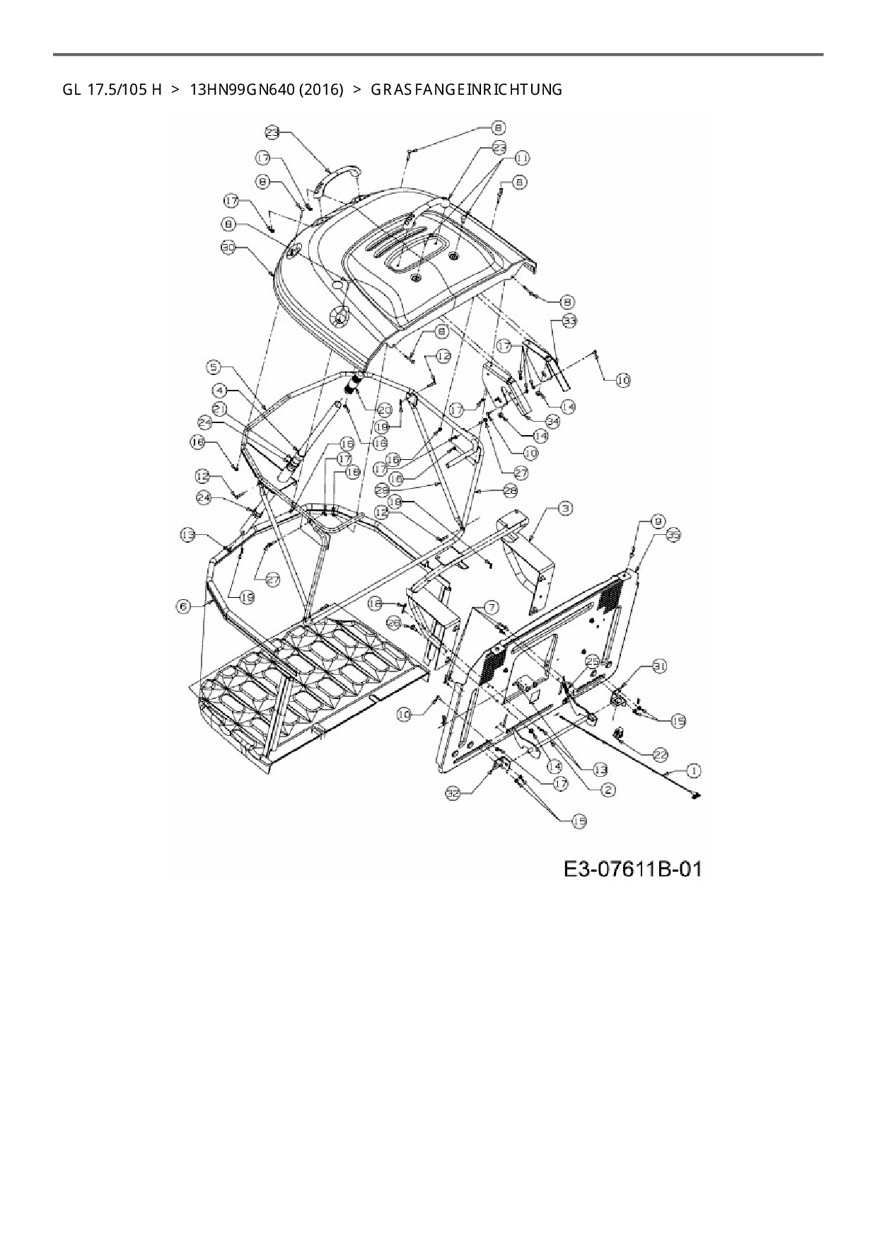 Ersatzteile für Rasentraktor Gartenland GL 17.5/105 H aus der Zeichnung Grasfangeinrichtung: