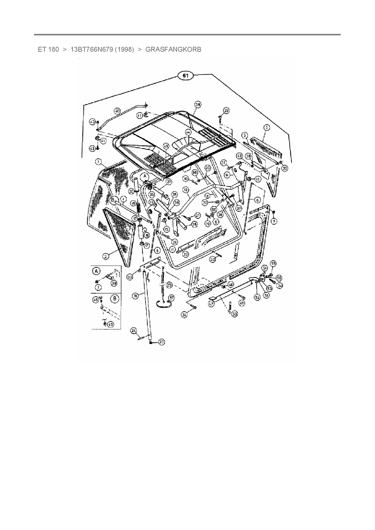 Ersatzteile für Rasentraktor White ET 180 aus der Zeichnung Grasfangkorb (1):