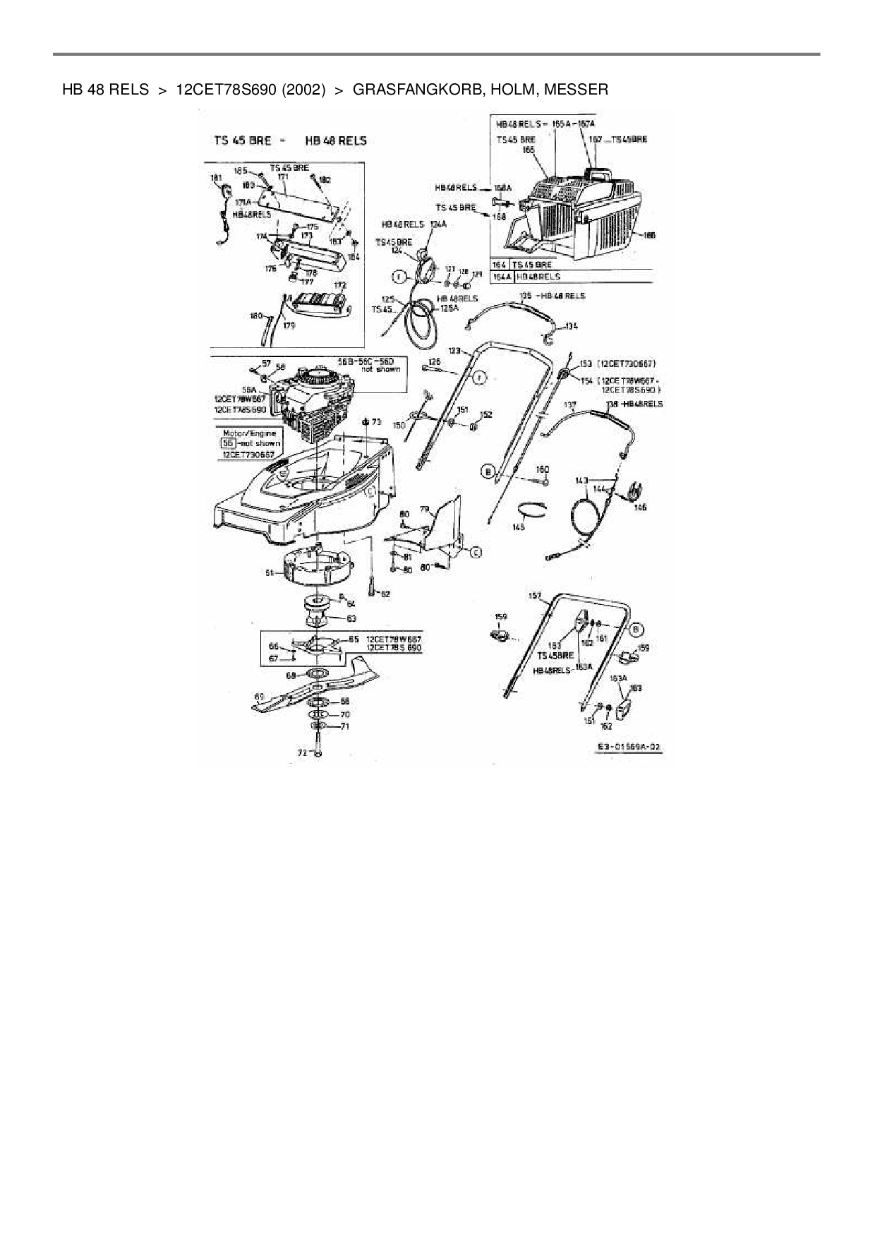 Ersatzteile für Motormäher mit Antrieb Gutbrod HB 48 RELS aus der Zeichnung Grasfangkorb, Holm, Messer: