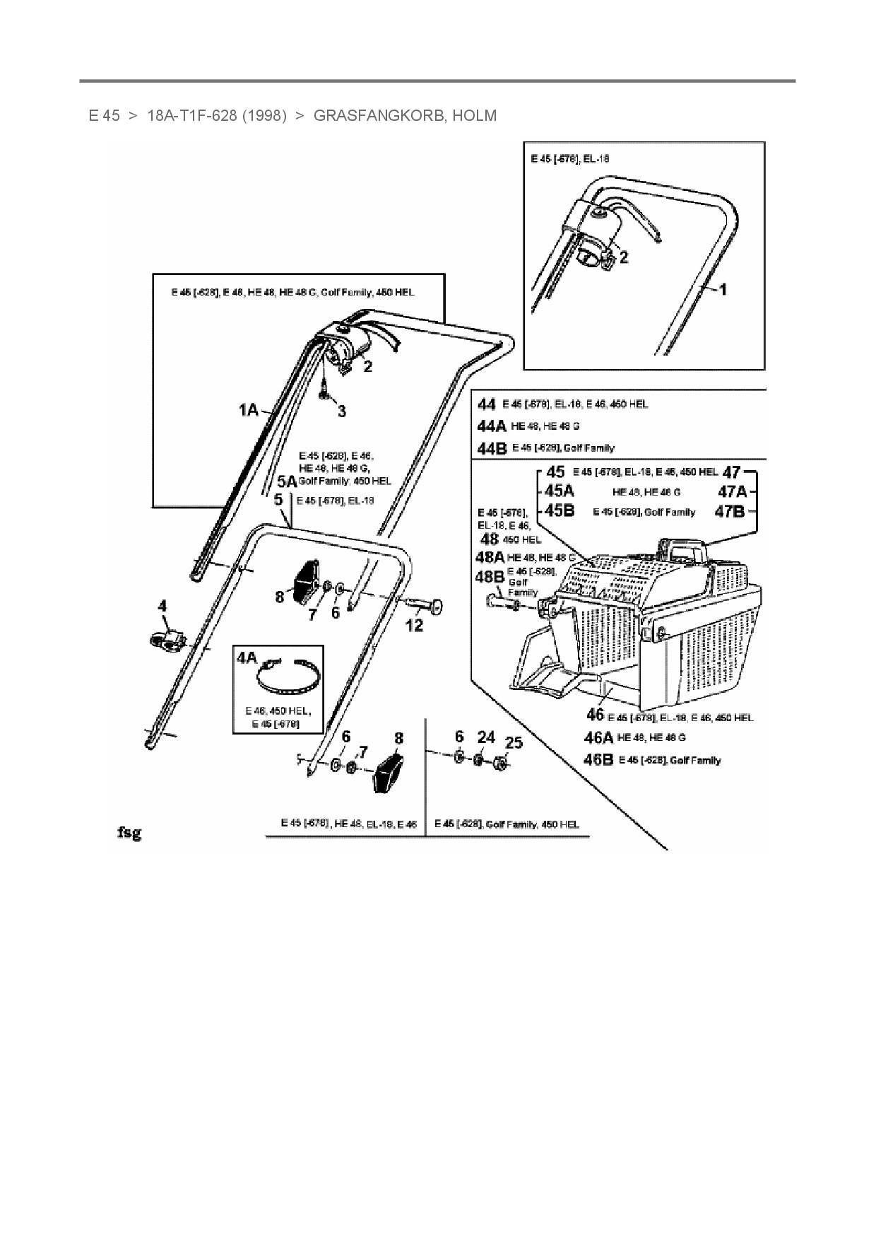 Ersatzteile für Elektromäher Raiffeisen E 45 aus der Zeichnung Grasfangkorb, Holm: