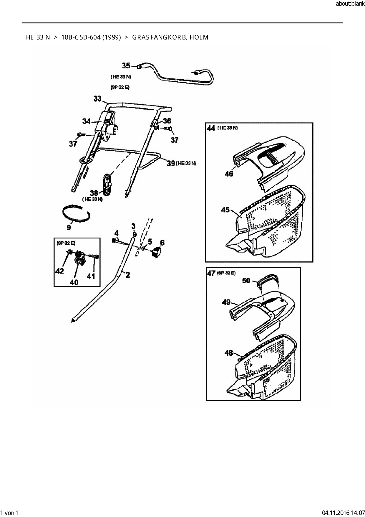 Ersatzteile für Elektromäher Gutbrod HE 33 N aus der Zeichnung Grasfangkorb, Holm: