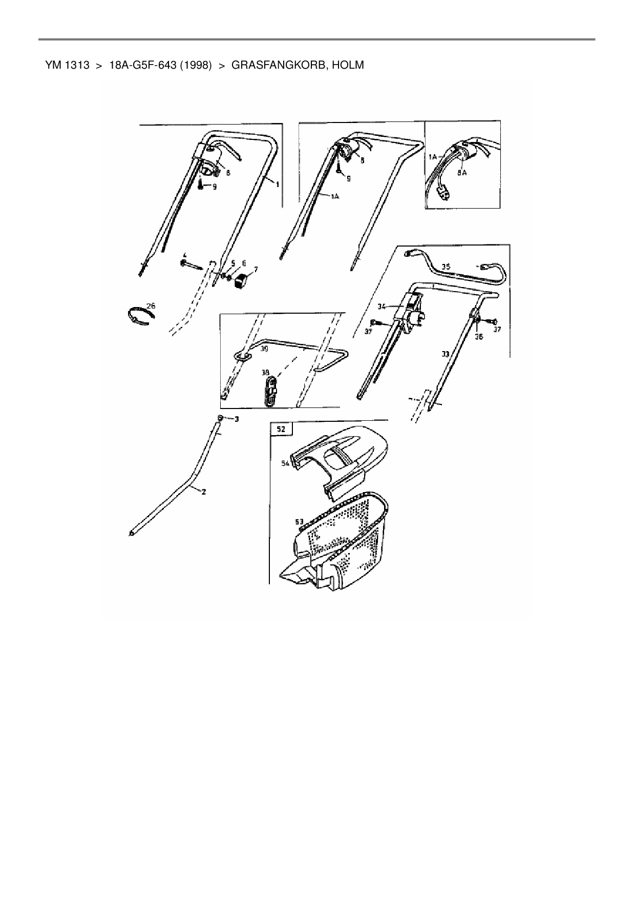 Ersatzteile für Elektromäher Yard-Man YM 1313 aus der Zeichnung Grasfangkorb, Holm:
