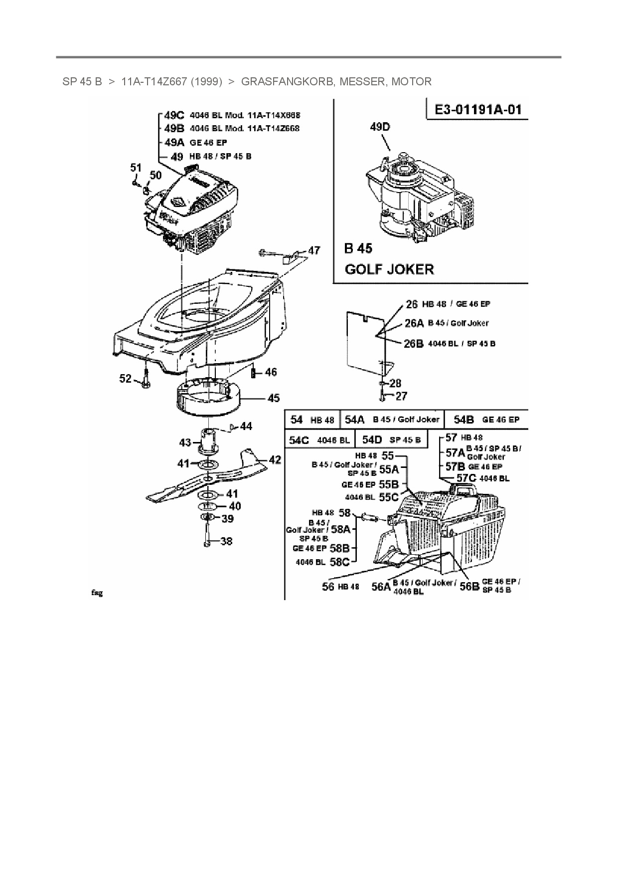 Ersatzteile für Motormäher Stinnes Pro SP 45 B aus der Zeichnung Grasfangkorb, Messer, Motor:
