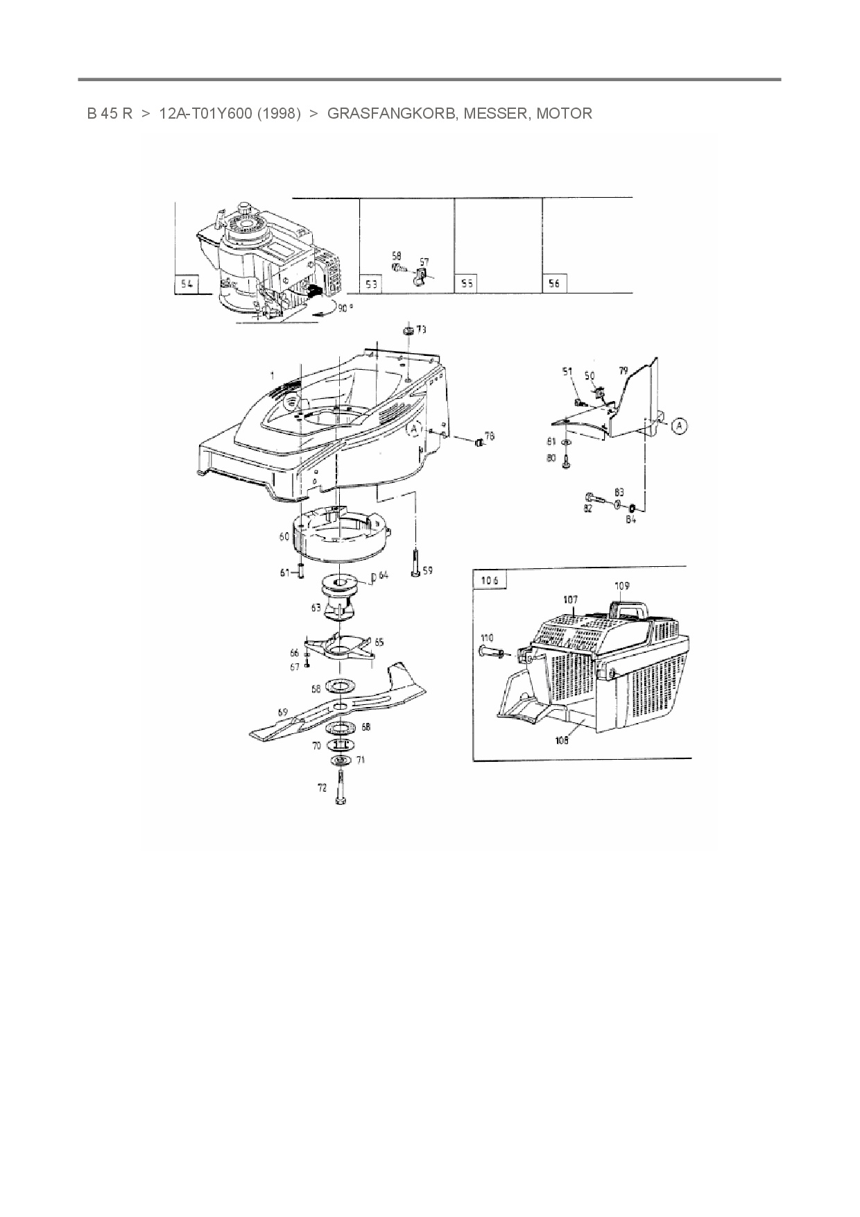 Ersatzteile für Motormäher mit Antrieb MTD B 45 R aus der Zeichnung Grasfangkorb, Messer, Motor: