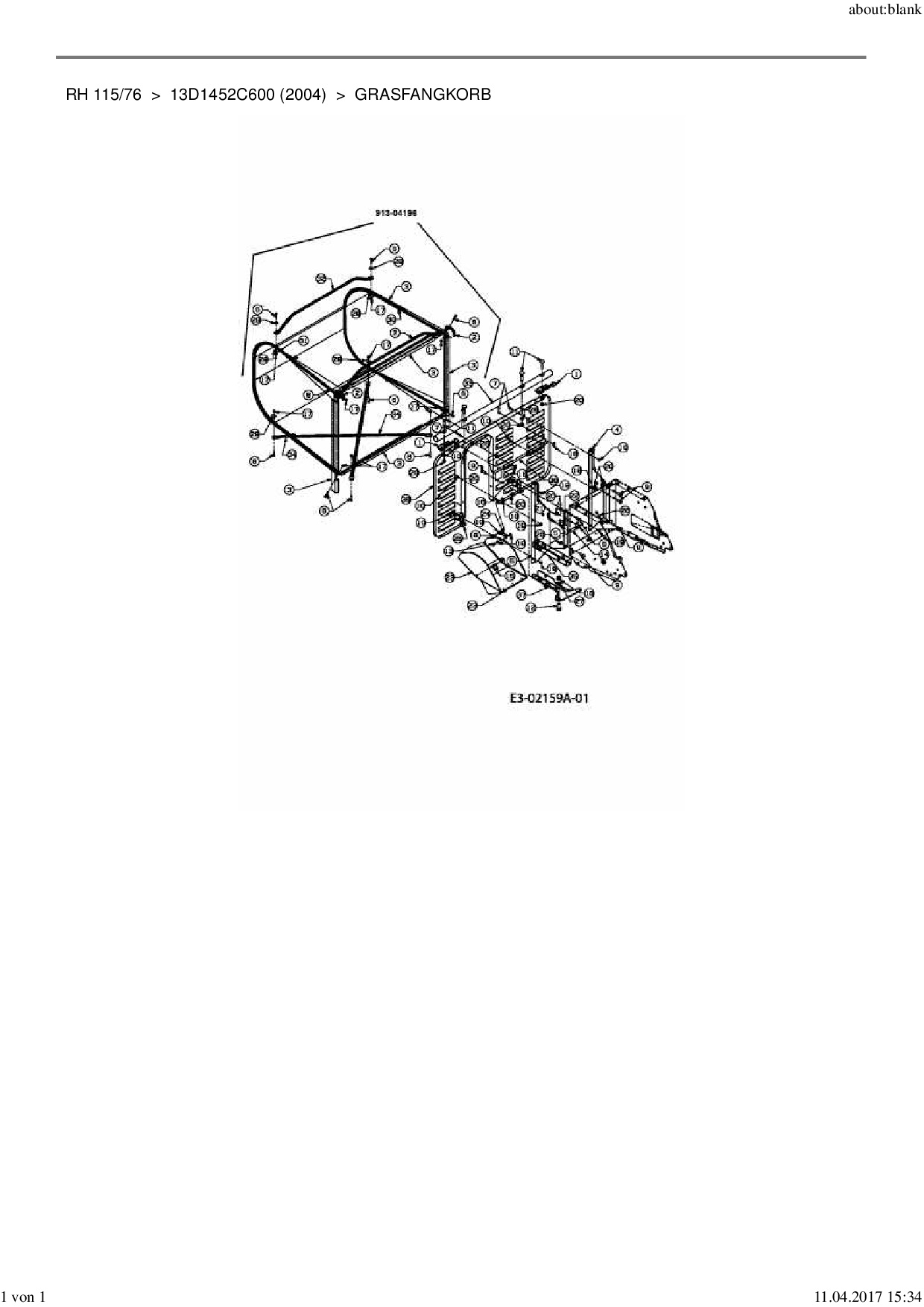 Ersatzteile für Rasentraktor MTD RH 115/76 aus der Zeichnung Grasfangkorb: