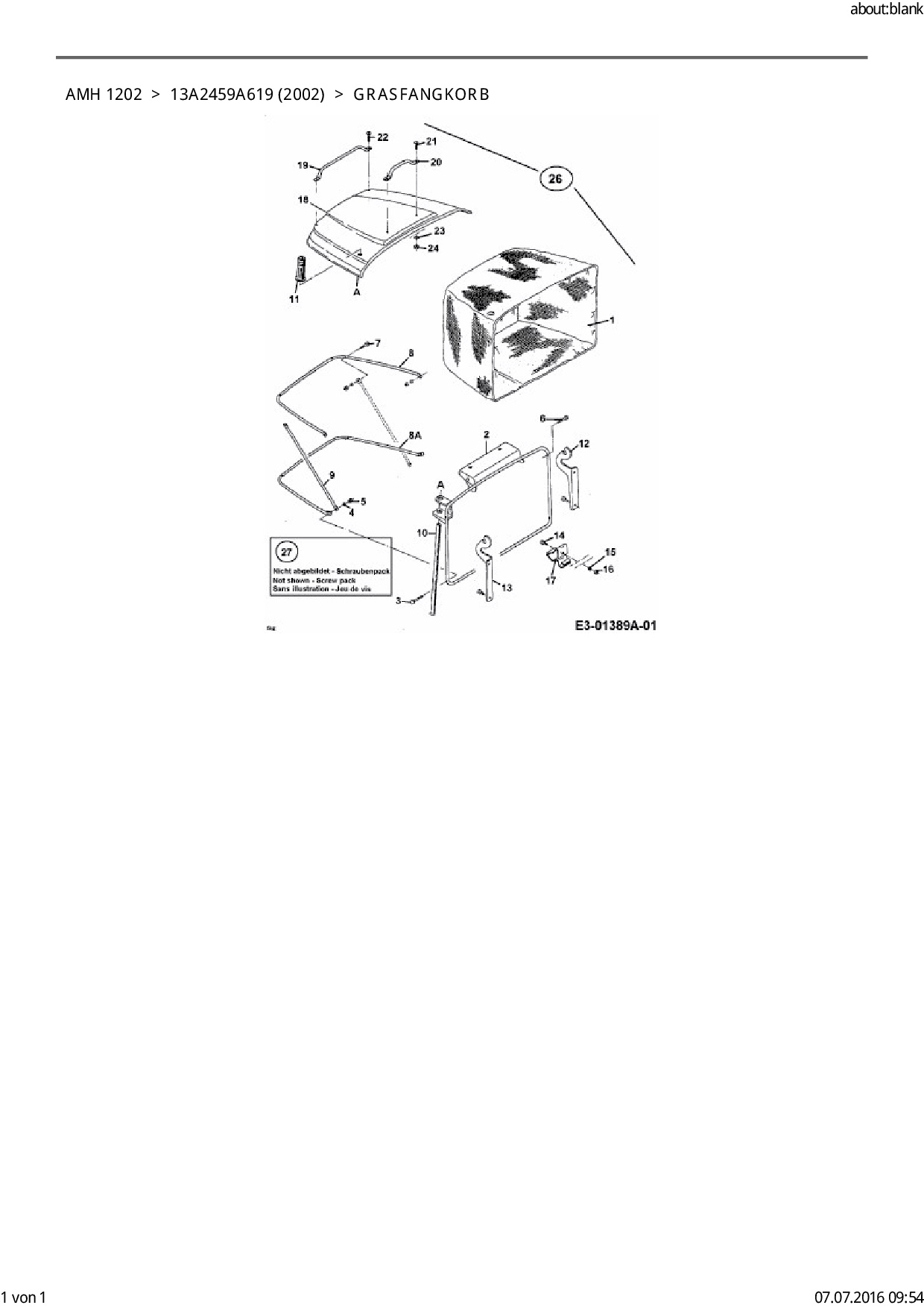Ersatzteile für Rasentraktor FLEURELLE AMH 1202 aus der Zeichnung Grasfangkorb: