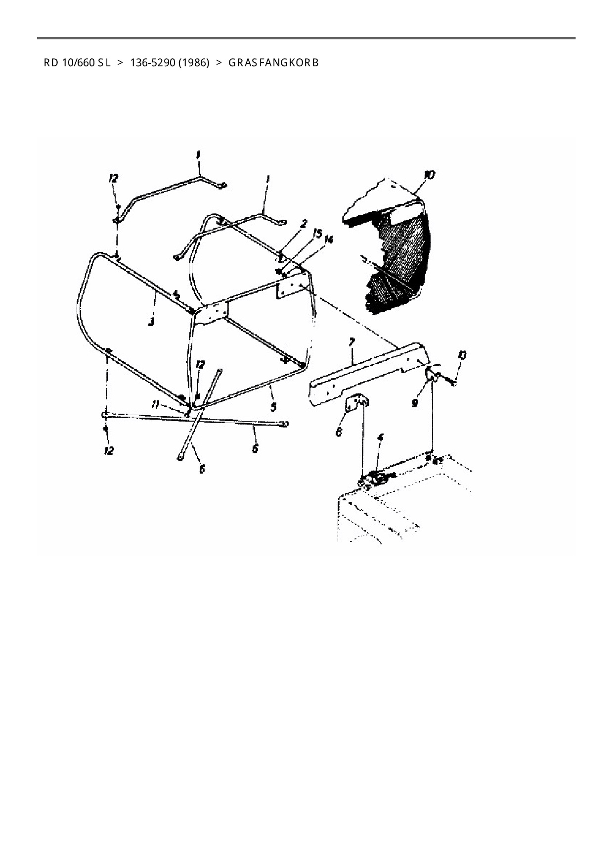 Ersatzteile für Rasentraktor Columbia RD 10/660 SL aus der Zeichnung Grasfangkorb: