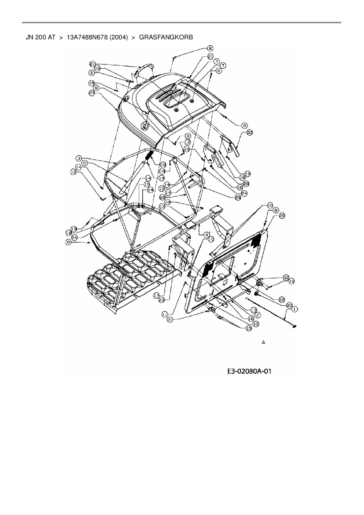 Ersatzteile für Rasentraktor MTD JN 200 AT aus der Zeichnung Grasfangkorb:
