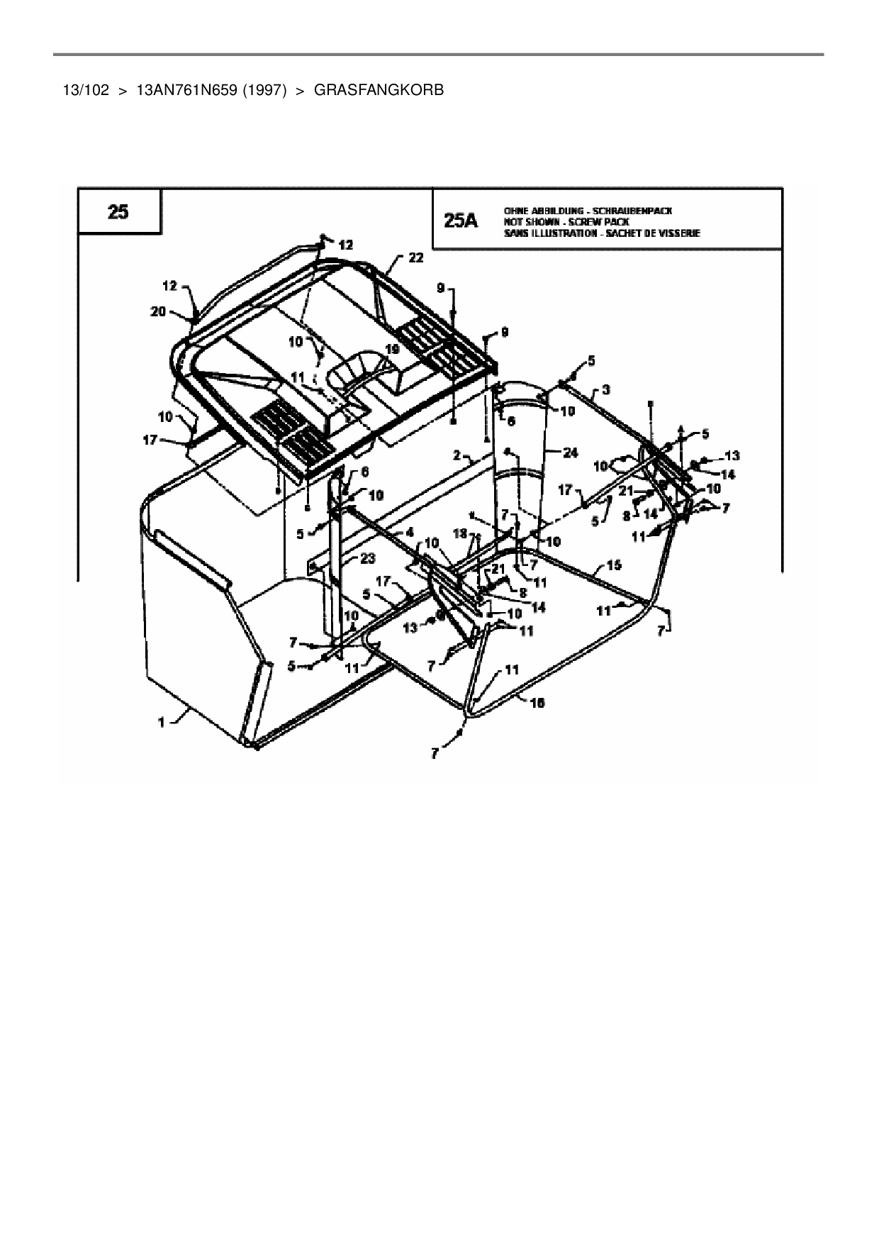 Ersatzteile für Rasentraktor Mastercut 13/102 aus der Zeichnung Grasfangkorb: