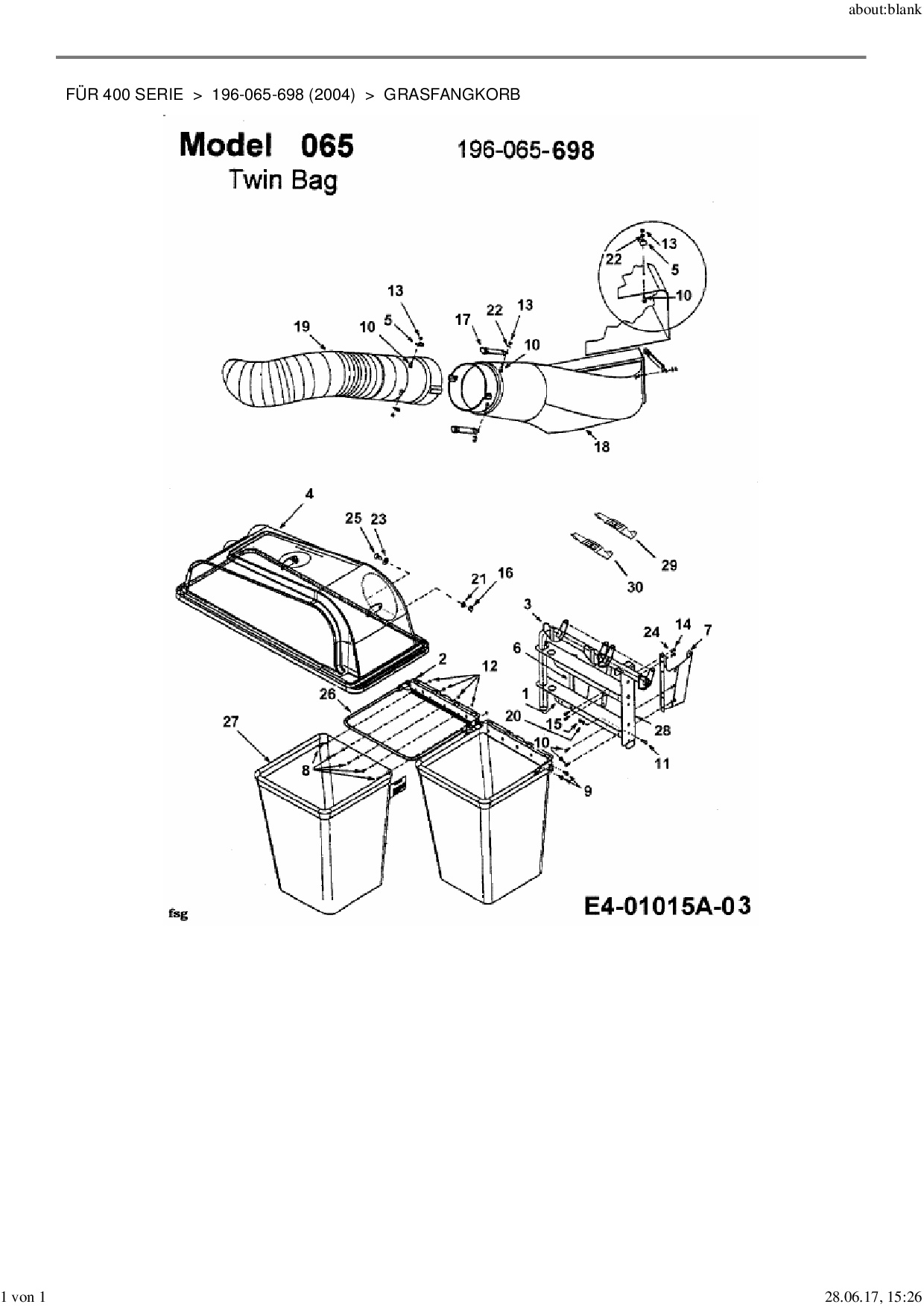 Die Ersatzteil-Zeichnung für Grasfangvorrichtung Zubehör Garten- und Rasentraktoren für 400 Serie als Download: