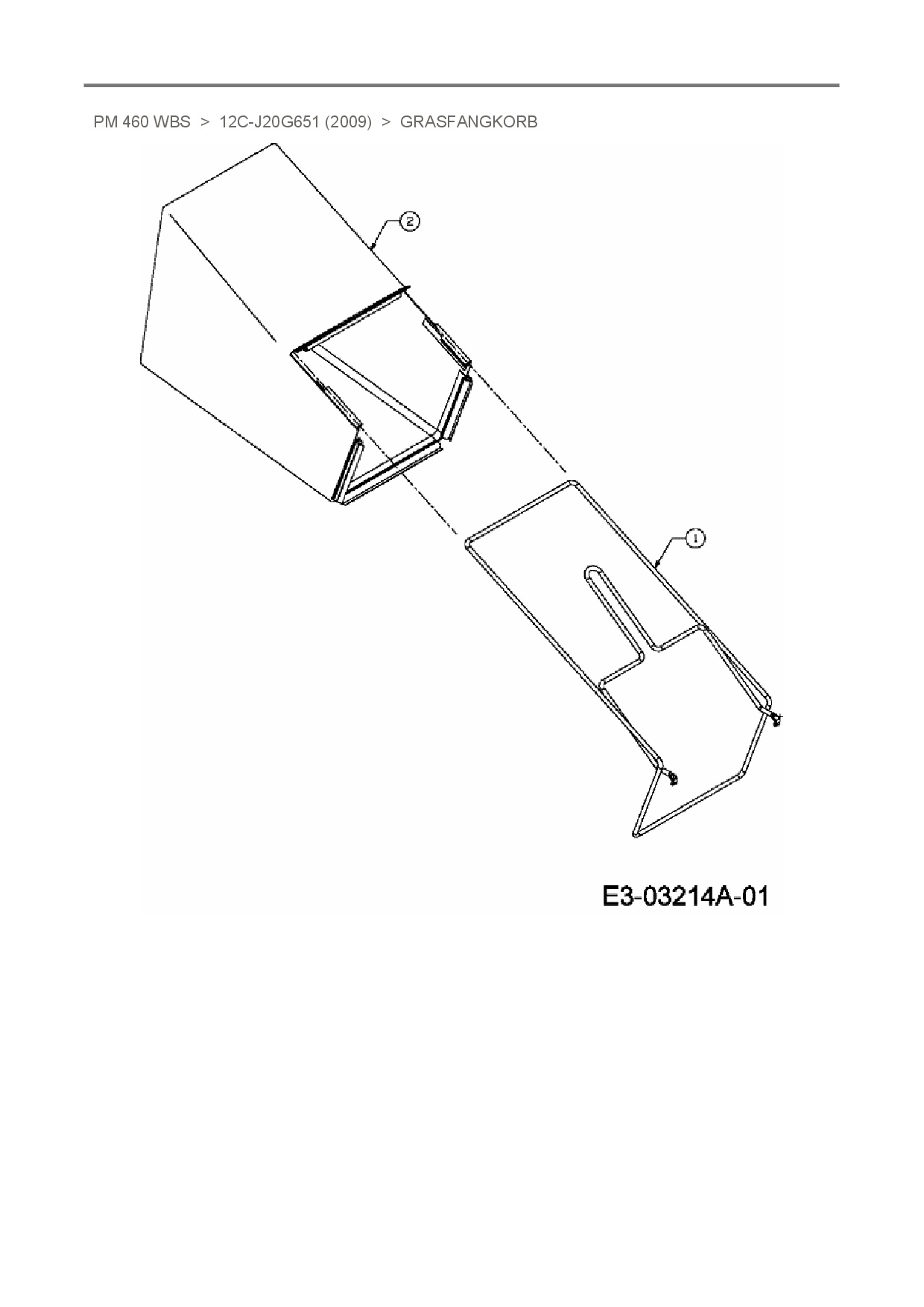 Ersatzteile für Motormäher mit Antrieb Terradena PM 460 WBS aus der Zeichnung Grasfangkorb: