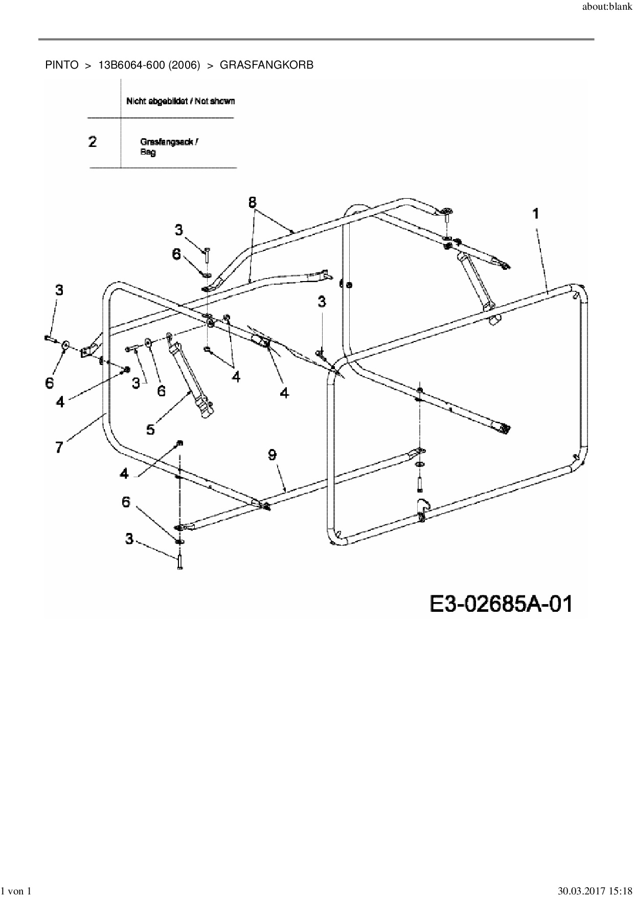 Ersatzteile für Rasentraktor MTD Pinto aus der Zeichnung Grasfangkorb: