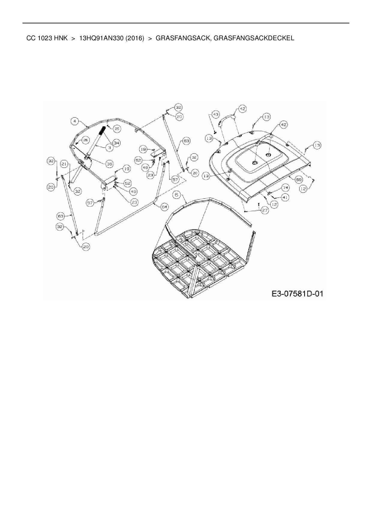 Ersatzteile für Rasentraktor Cub Cadet CC 1023 HNK aus der Zeichnung Grasfangsack, Grasfangsackdeckel: