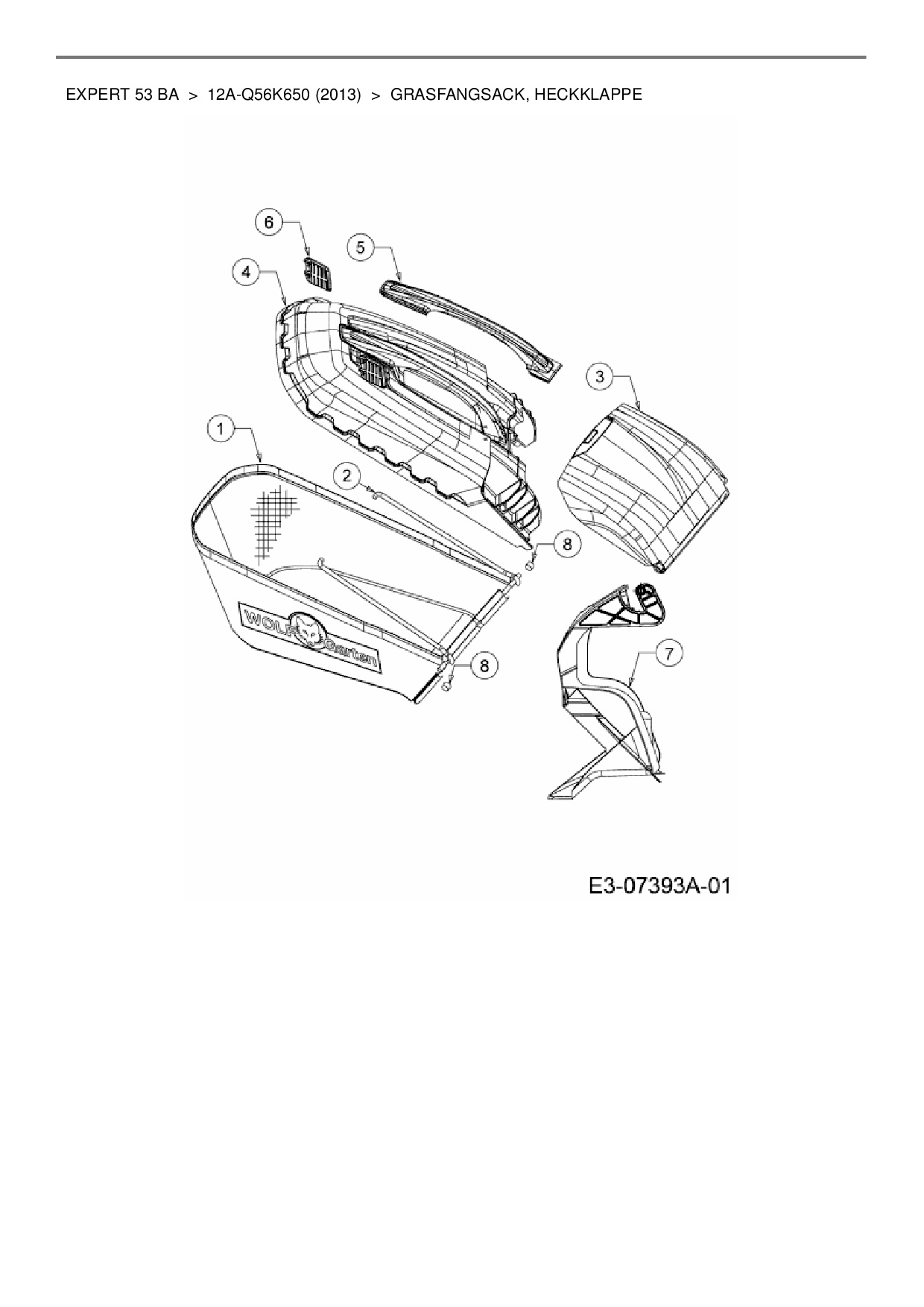 Ersatzteile für Motormäher mit Antrieb Wolf-Garten Expert Expert 53 BA aus der Zeichnung Grasfangsack, Heckklappe: