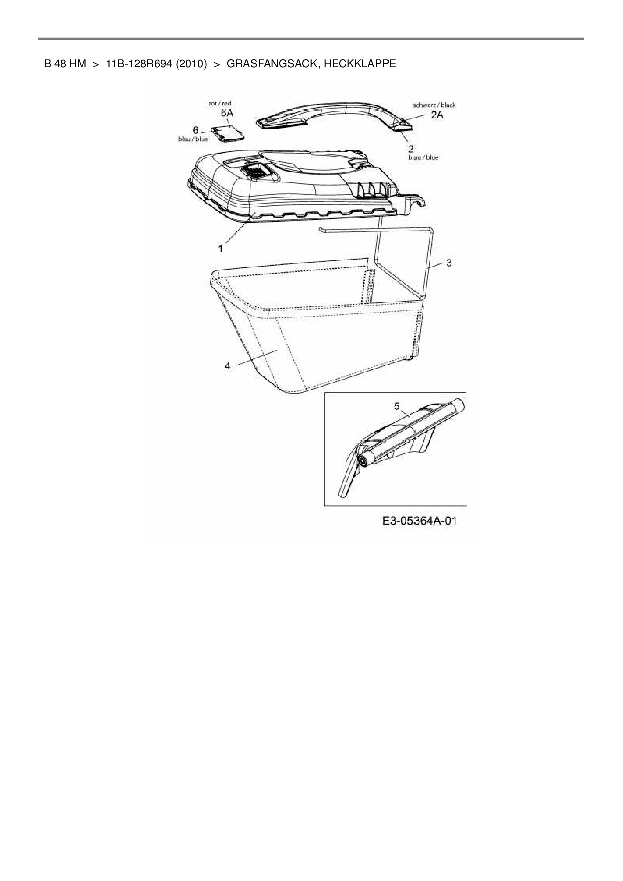 Ersatzteile für Motormäher Lux Tools B 48 HM aus der Zeichnung Grasfangsack, Heckklappe: