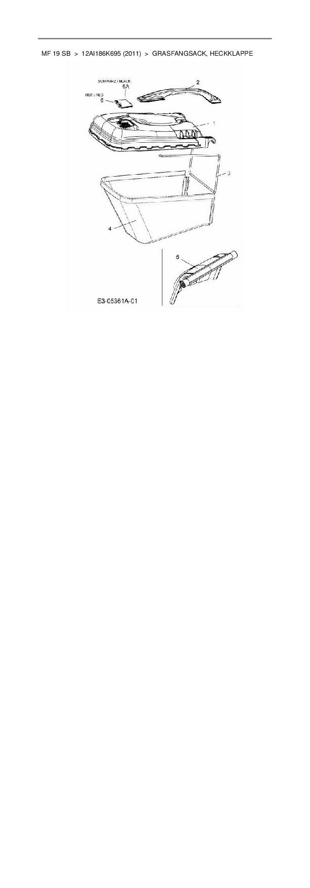 Ersatzteile für Motormäher mit Antrieb Massey Ferguson MF 19 SB aus der Zeichnung Grasfangsack, Heckklappe: