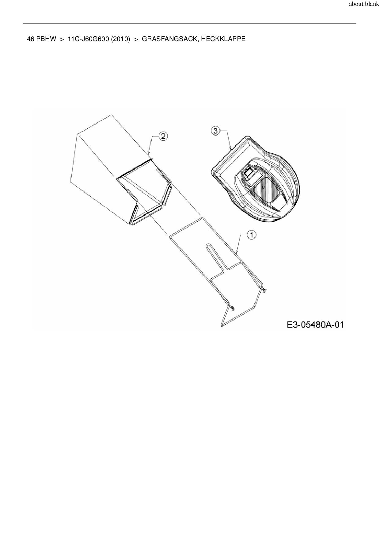 Ersatzteile für Motormäher MTD 46 PBHW aus der Zeichnung Grasfangsack, Heckklappe: