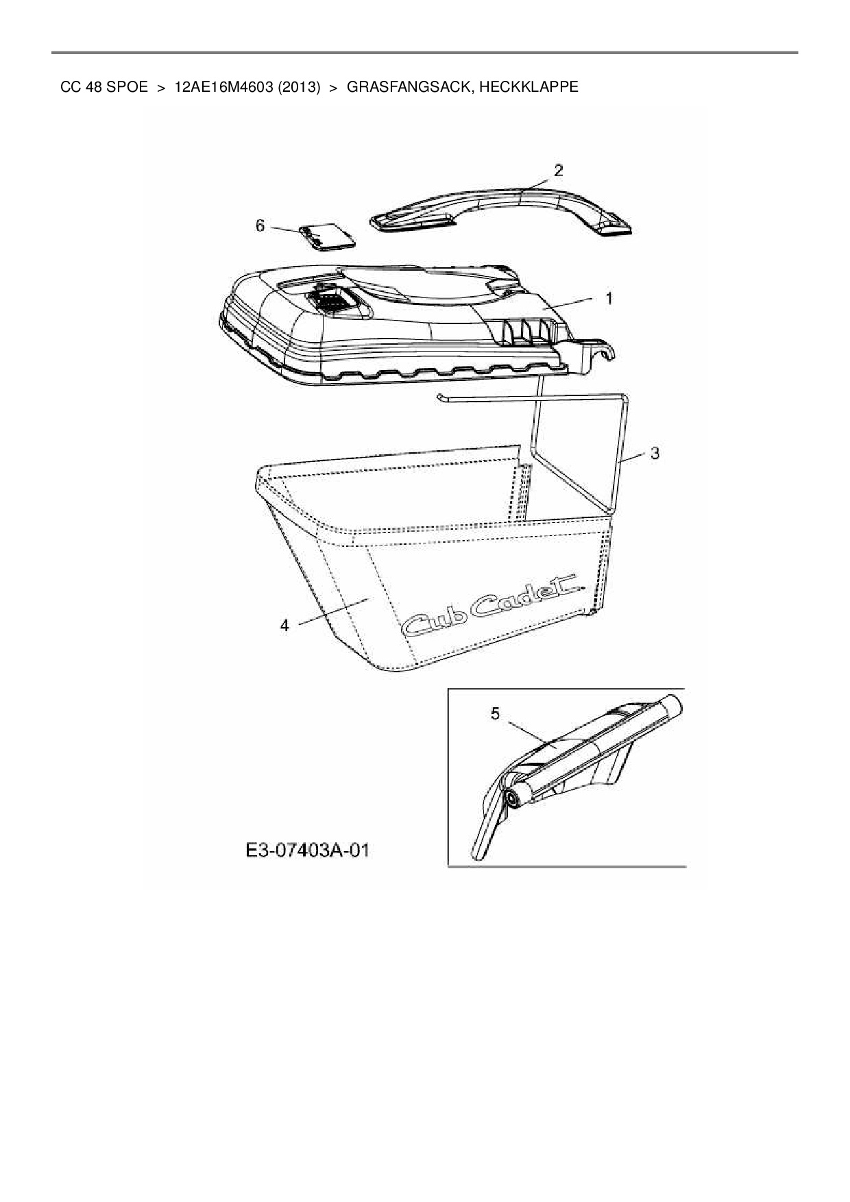 Ersatzteile für Motormäher mit Antrieb Cub Cadet CC 48 SPOE aus der Zeichnung Grasfangsack, Heckklappe: