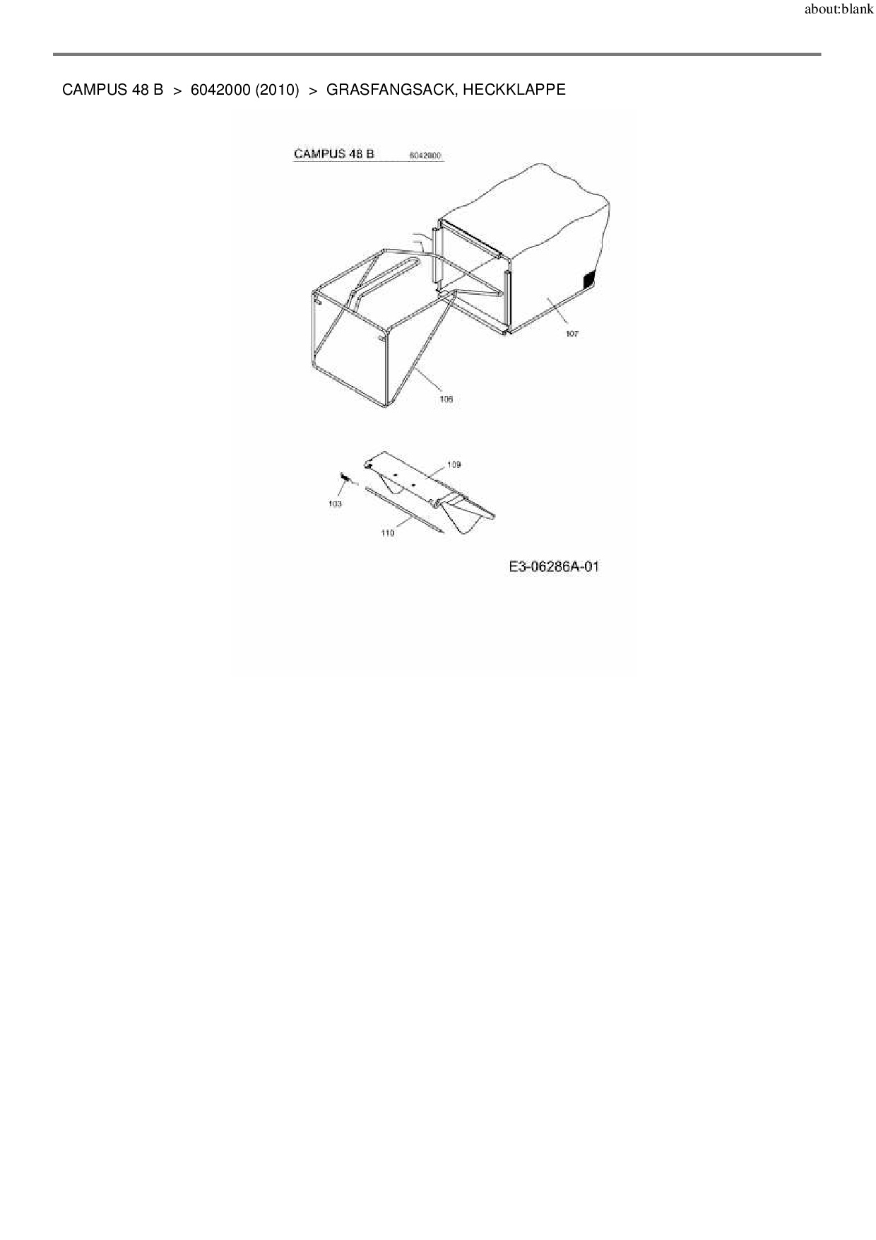 Ersatzteile für Motormäher Wolf-Garten Campus 48 B aus der Zeichnung Grasfangsack, Heckklappe:
